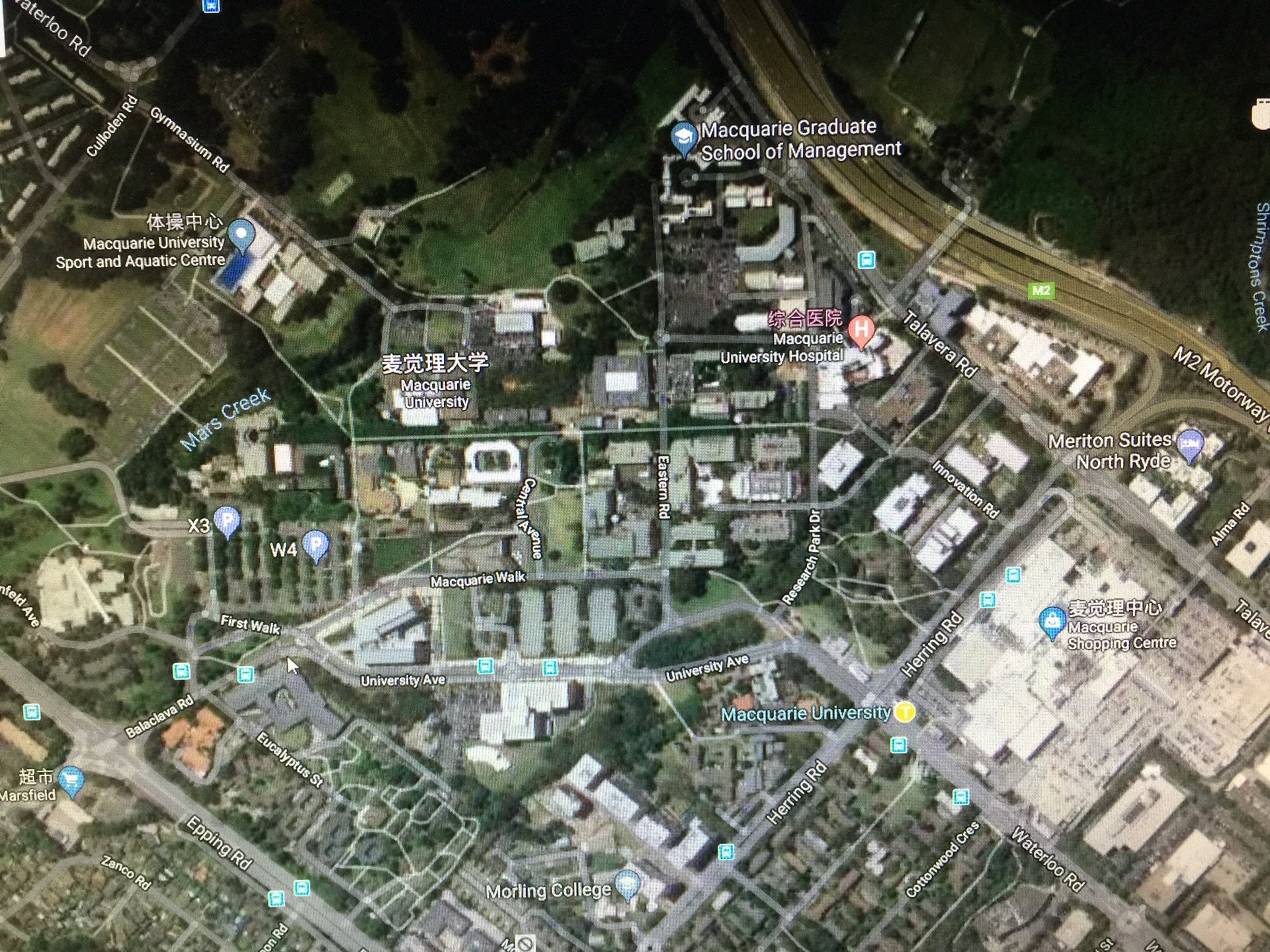 现在麦考瑞大学可以坐火车到,对面就是一个很大的购物中心.......