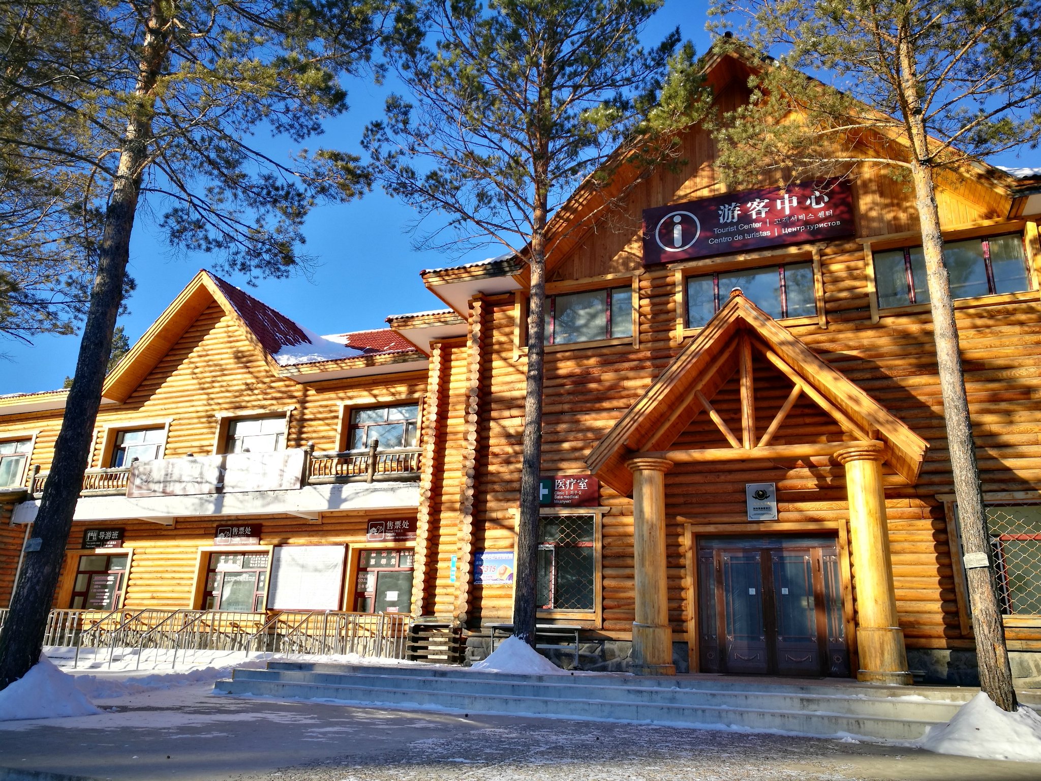 从漠河开到北极村大概一个半小时的车程,道路上已经全是白雪皑皑了,司机也挺能聊,他主要是跑包车生意的,三天一个环线那种,可以去北红村,还有其他一些景点。他的老婆在上海做生意,卖东北特产那种,他说他也去过上海,不过还是喜欢家乡。漠河的话从八月份就开始下雪了,冬天虽然漫长,不过他也习惯了。是啊,金窝银窝,比不上自己的狗窝嘛。