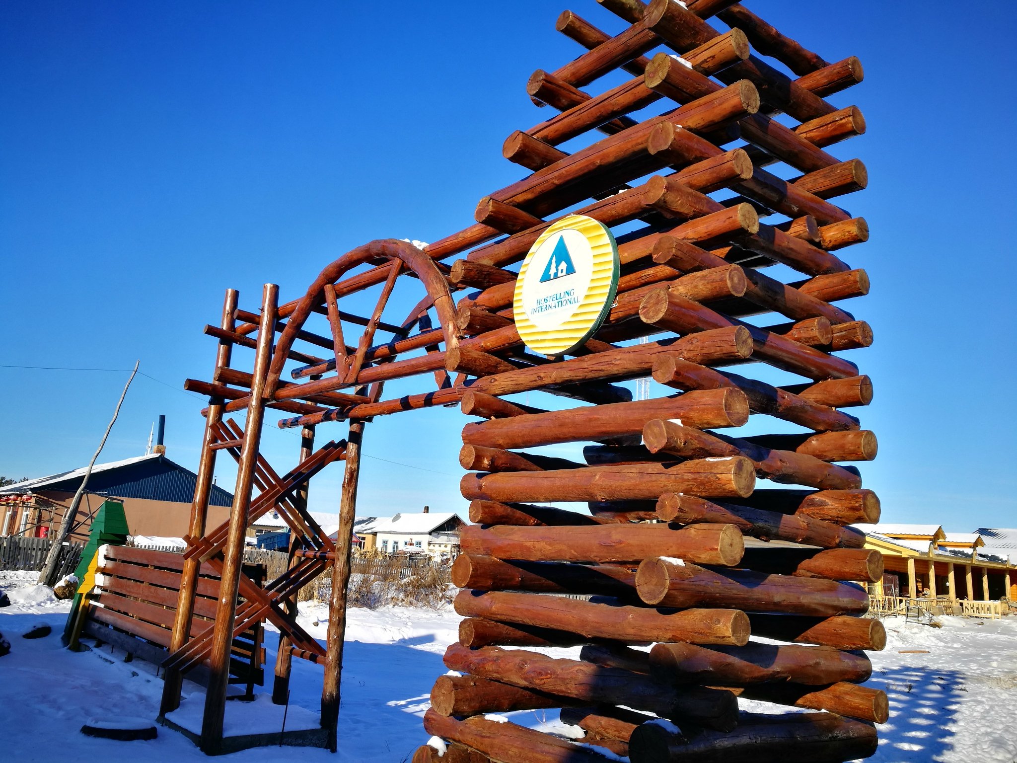 一大早九点半到北极村,招待我的人家倒也热情,房间挺干净清爽的,先补一觉再说。我住的是普通标间,晚上还看到他家还有火炕房,外墙上一个小洞,把柴火塞进去噼噼啪啪地烧着,估计躺在火炕上感觉就像在烤乳猪,我是睡不惯,太干太热了。