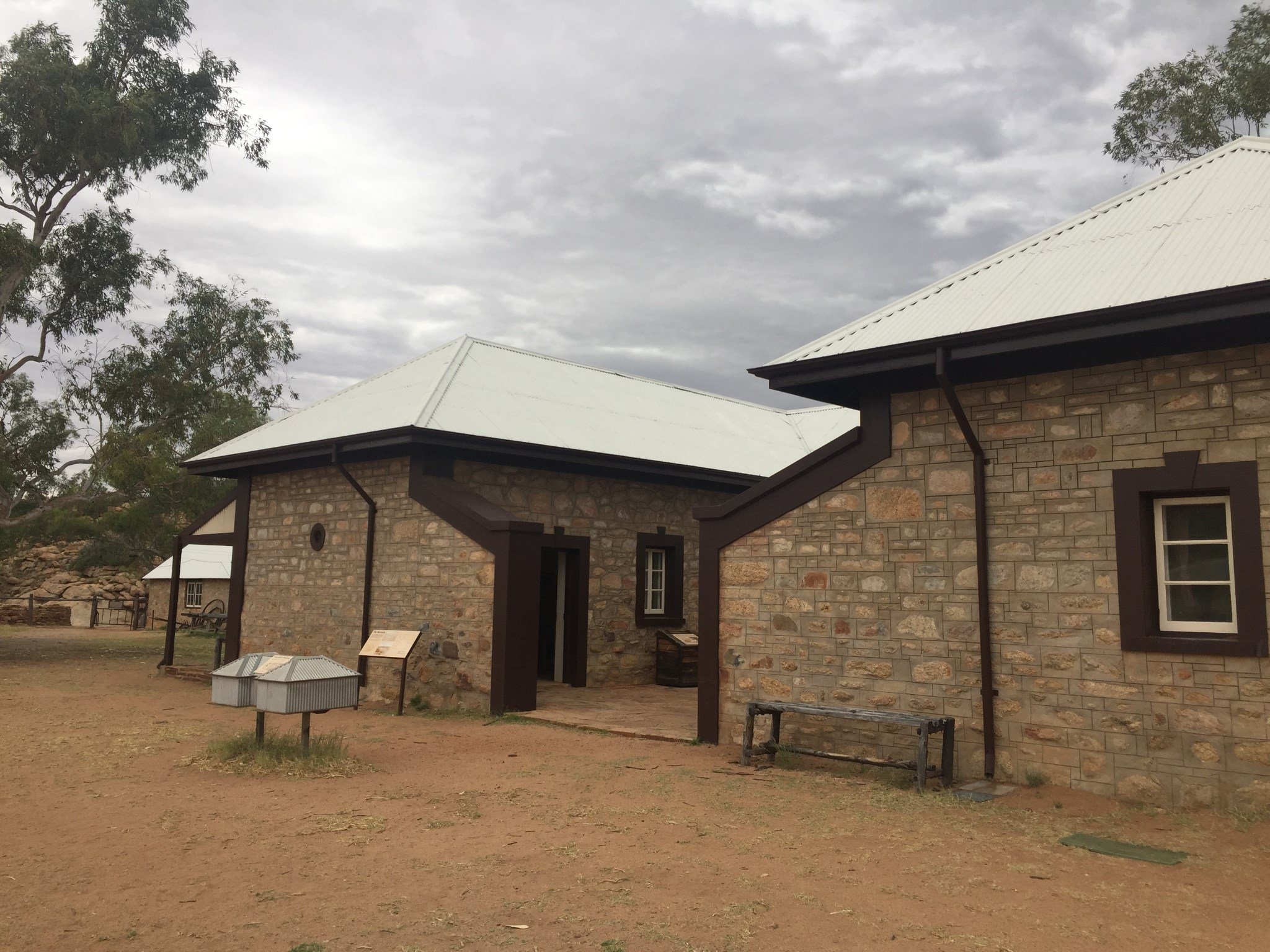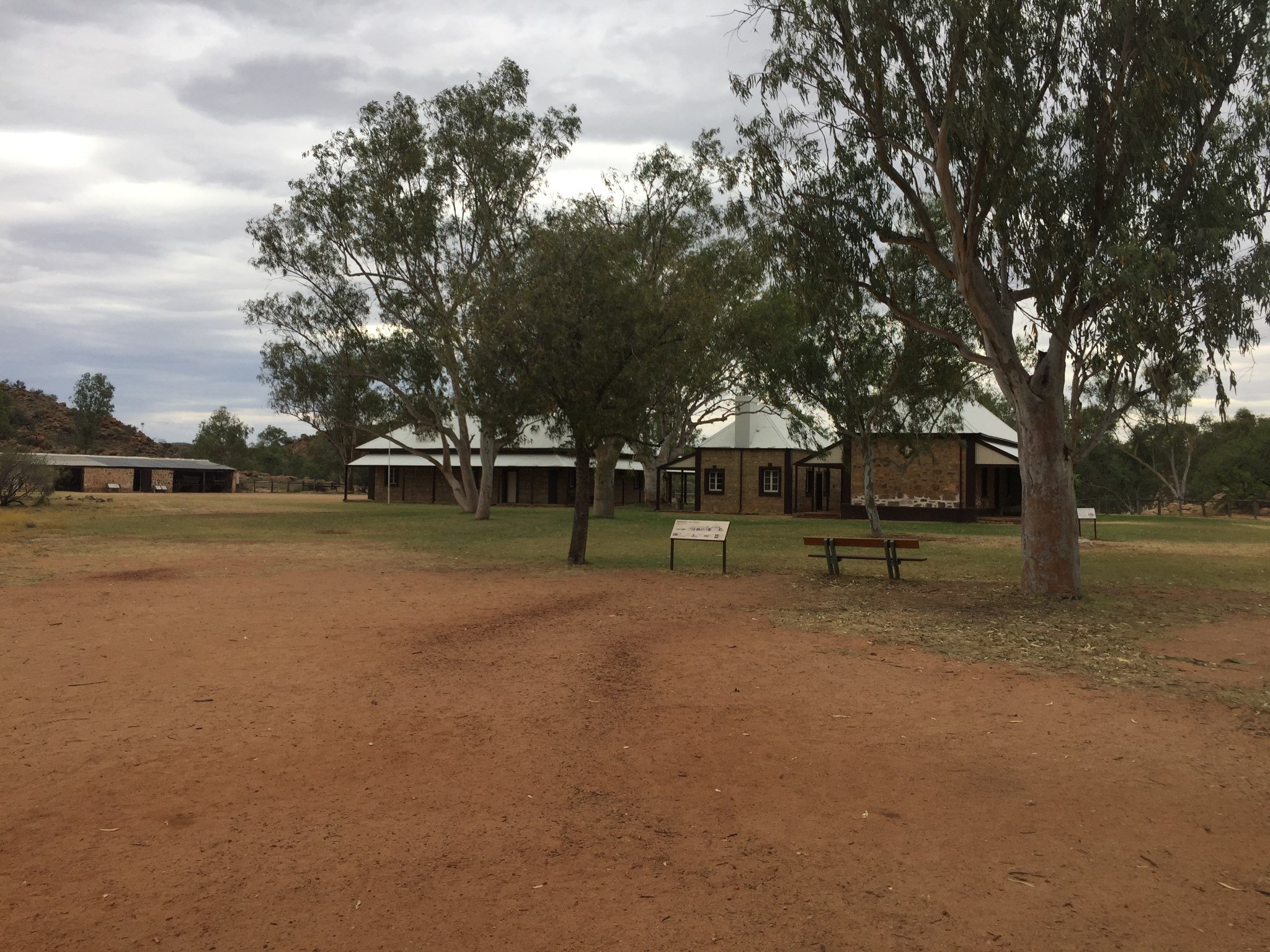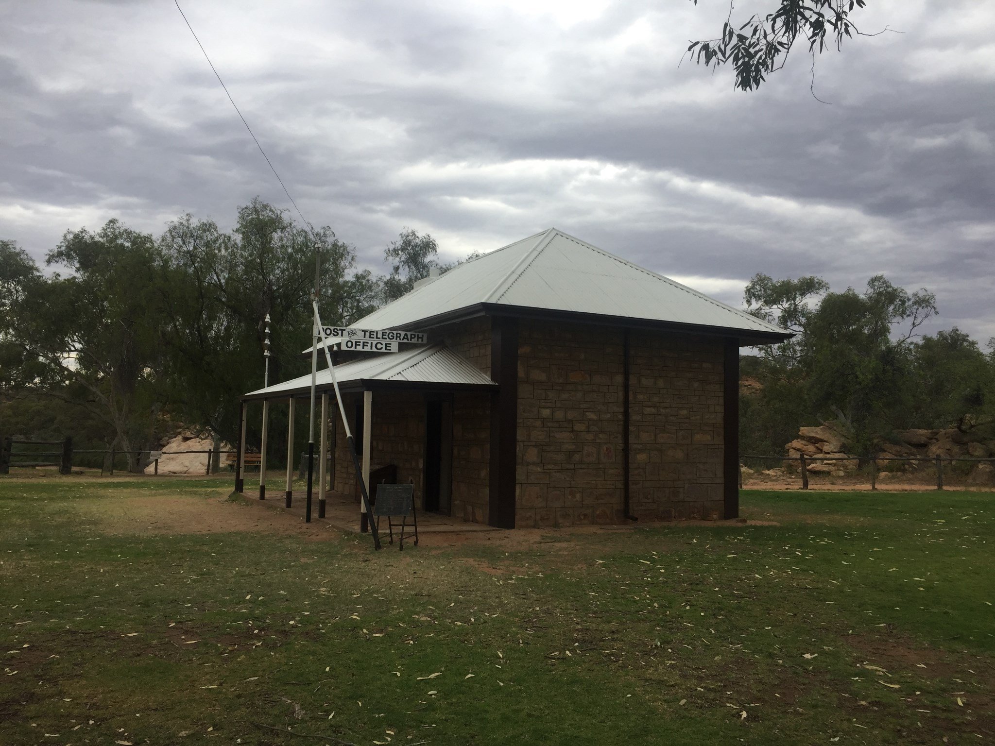 这是一个旧的电报中继站,由于过去在澳大利亚荒芜的中心设跨越大陆电报线并不是一件容易的事。这一点你能在往昔回忆的老电报站中的小博物馆里就能发现,这个站是在19世纪70年代初期用当地的石头建造的,一直工作到1932年。后来作为混血的土著儿童福利房,一直到1963年。电报站是历史保护区的一部分。