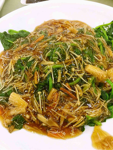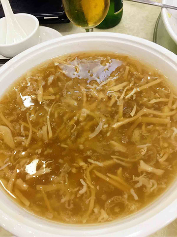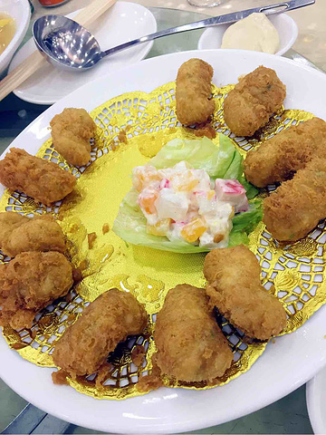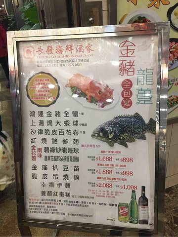 这间长发海鲜酒楼在越秀广场的四楼,越秀广场楼下有停车场,在越秀广场消费可在店拿消费单,停车免费,不过饭点时很难找到停车位。 新薄岗附近没有地铁,来到越秀广场需要坐巴士到达,可在黄大仙地铁站转巴士到达,也可以在黄大仙走过去,大约二十分钟。 越秀广场四楼是长发酒楼,五楼是富临酒家,一起11个人点了一桌套餐1888元,餐有乳猪,龙趸鱼二种做法,大虾伊面,菇翅汤,瑶柱豆苗,甜品是红枣糕,有两瓶啤酒和饮料赠送。 乳猪烤的酥脆,皮脆肉香,不油不腻。龙趸鱼一个蒸一个清炒,蒸的味道很普通,炒的味道超赞,加上蒜蓉配上西兰花好好味。大虾都比较大和伊面一起湿炒,味道都ok,菇翅汤很一般,瑶柱豆苗好好味,豆苗是用水煮过的,煮完再用蒜蓉炒,上面浇上炒好的瑶柱丝,这个做法都不错,比爆炒的豆苗软,老人家也能吃。甜品红枣糕是蒸好拿过来的,又甜又软绵,红枣味不算大,感觉还行,加上啤酒和橙汁可乐的罐装饮料,一桌1888元都不贵。套餐价还有半席的,人少可点半席,还有较贵一点的,菜谱也更好一点,我们点了价格中等的餐,11个人吃下来也很足了。 长发海鲜酒楼算是中等的酒楼,好一点的富临酒楼价格就更贵一些。酒楼店内宽敞,早上中午有早茶,晚上有炒菜,包房需提前预定,堂食饭点时需等位,不过等位的人不算多,来越秀广场,去这家长华海鲜酒楼都不错,价钱便宜服务热情,值得体验。