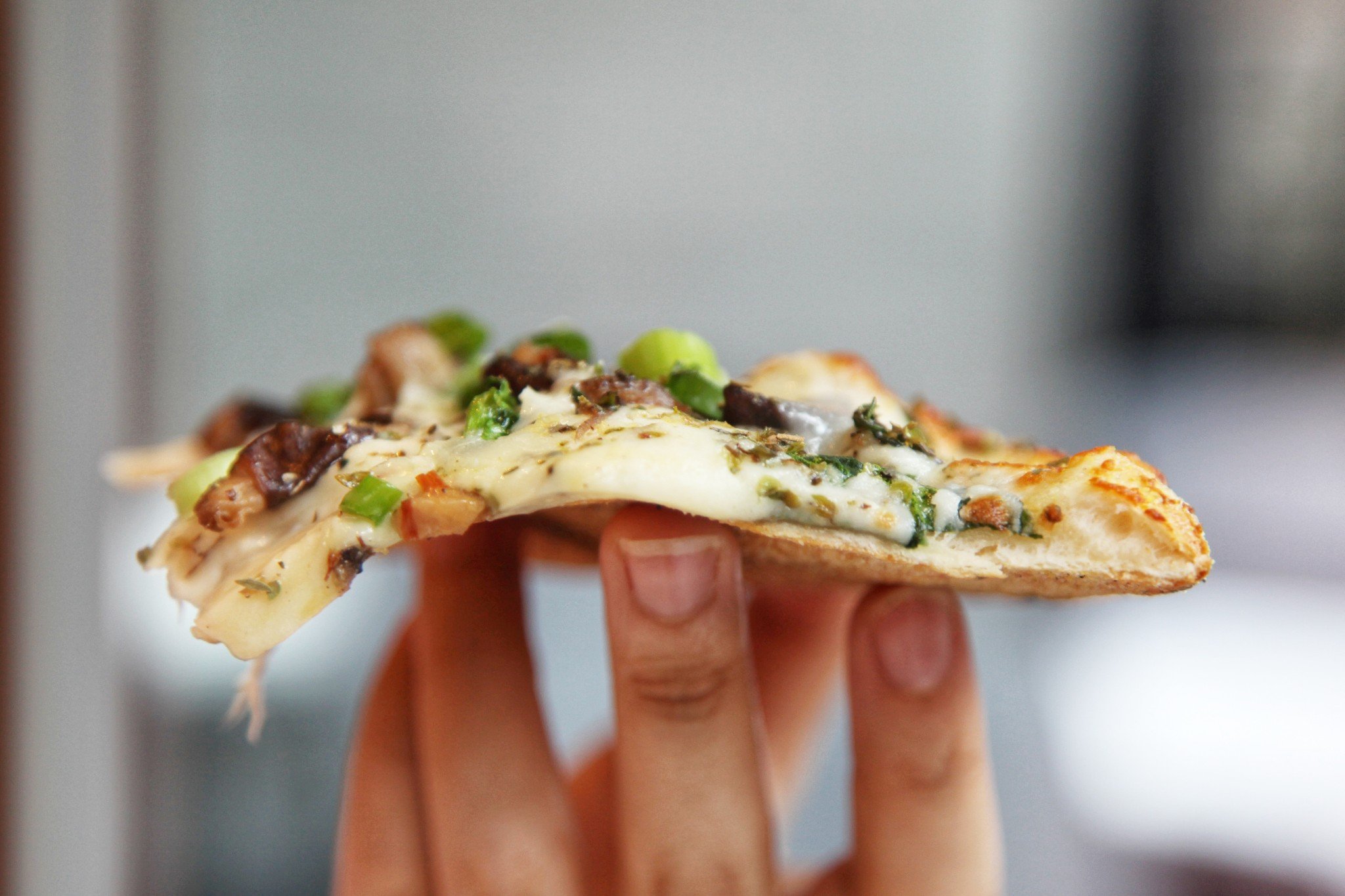 PIZZA的饼底比芝士要薄,亮点是上面的葱~