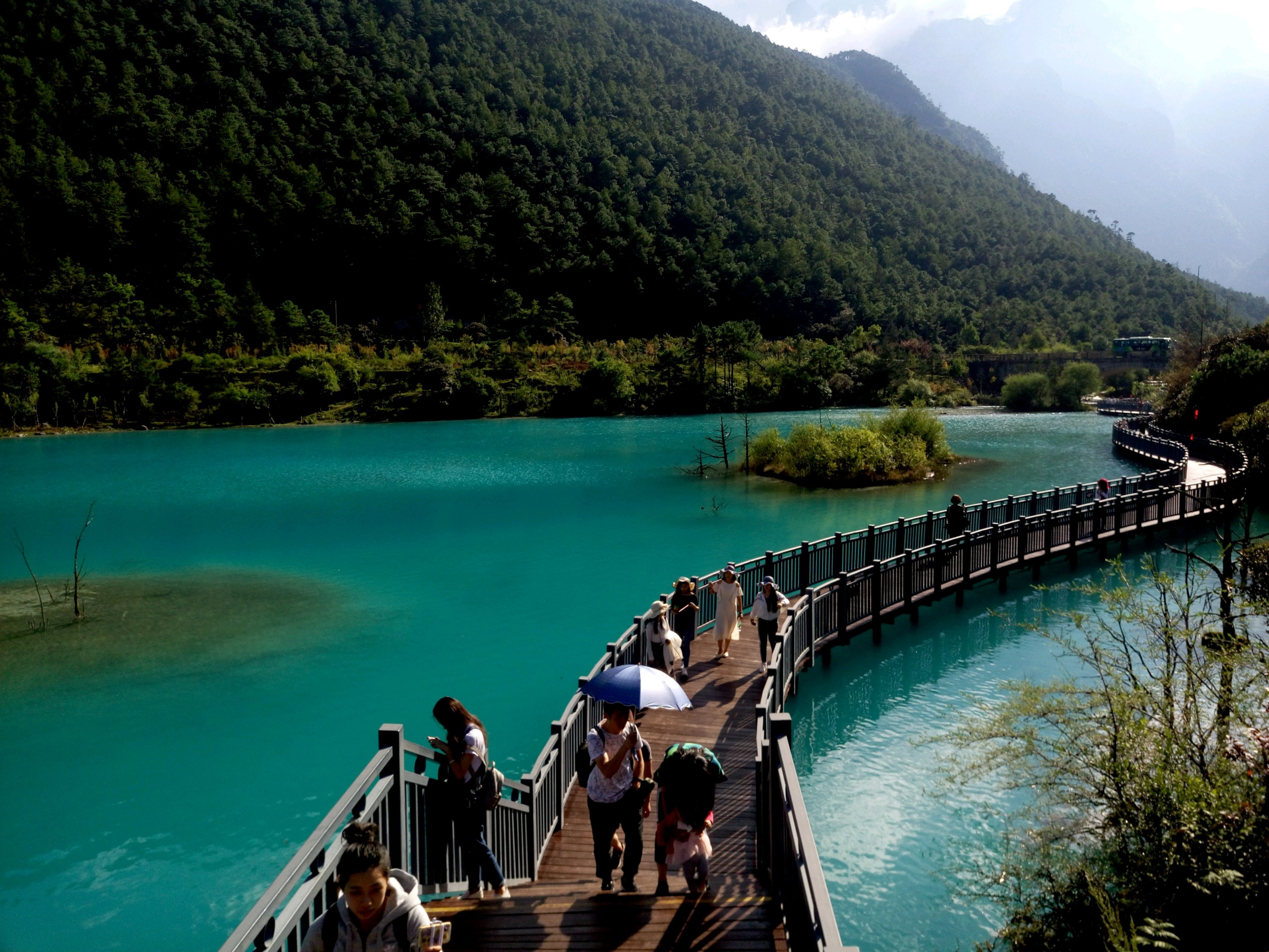 中饭是在蓝月谷上边一个二层楼的店里吃的土鸡火锅😂我可能失忆忘了名字,反正是三个字😁但是真的很好吃哇,虽然是团餐,但个人觉得比第一天来丽江吃的阿妈腊排骨里的土鸡更好吃耶~不知道是不是饿了~中饭后直接到了蓝月谷