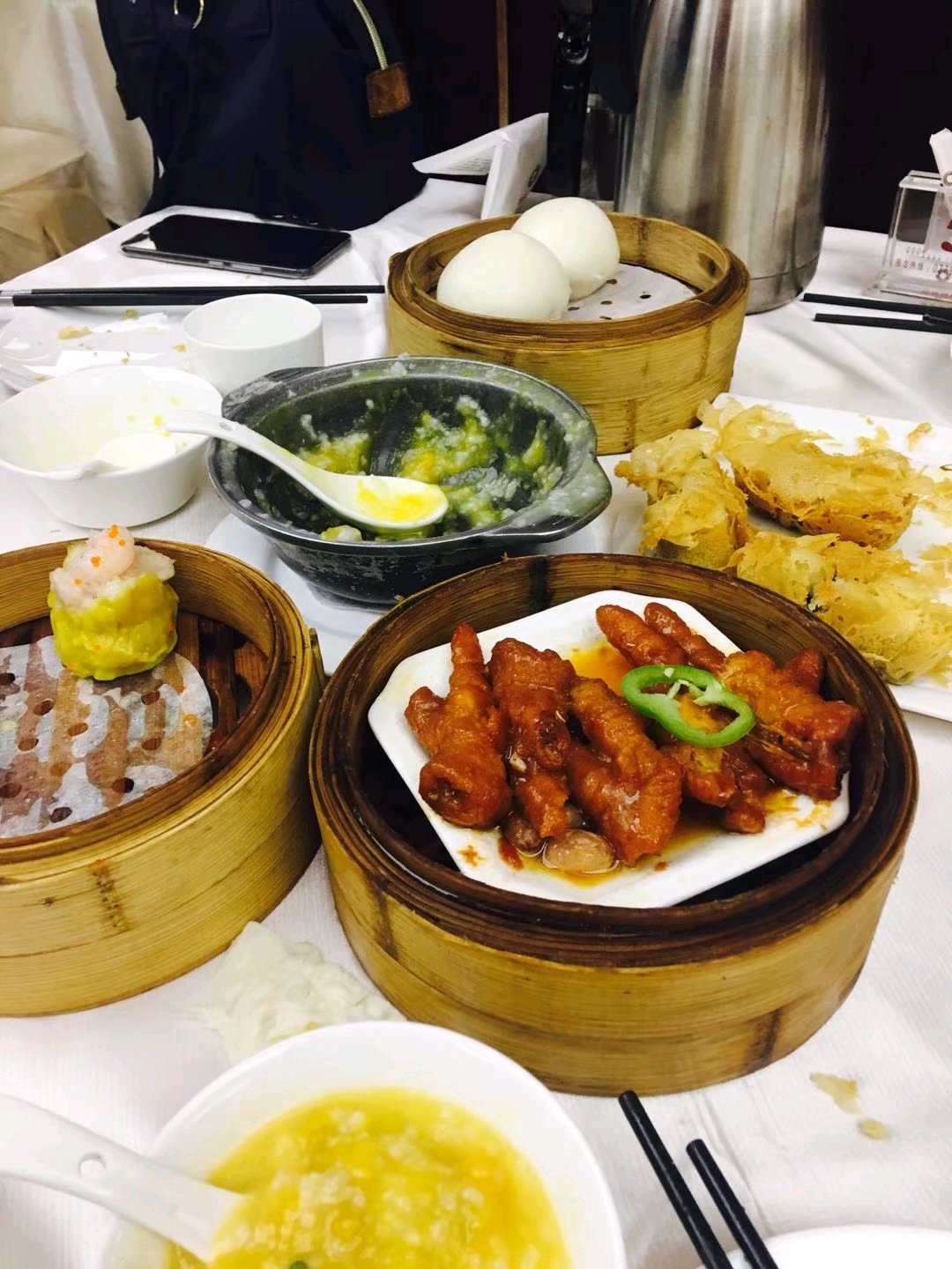 赶海回来也就是8-9点左右,建议去吃个早茶,早茶是上午8点到下午2点,看了很多攻略最后选择的是南珠宫酒店(在北海大道贵州路西行一百米路北)离银滩很远,建议可以骑电车,第一次去,我和老公以为走错地方了,没见过这么多人吃早餐呢北方人以为是人家在这弄婚宴呢!里面的大圆桌上坐满了人,当时是上午10点左右,后来才知道,人气很高,当地人也很多去的!餐厅收茶位费不给茶叶,你可以自带茶叶,之后去了其他几家没有南珠宫的味道好!人均消费35-45左右吧!推荐"流沙包,酱鸡爪,白灼菜心,炸龟苓膏"