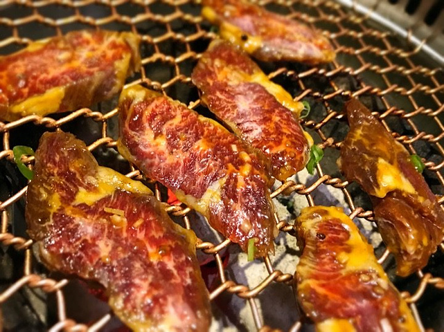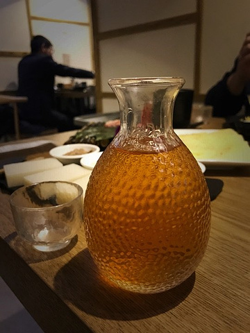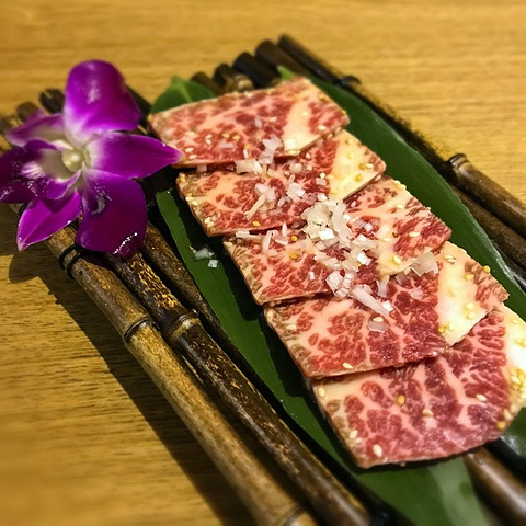 第一次走到高新万达金街的东街,看起来比西街更有气势呢,夜晚时分各种亮眼的招牌让人目不暇接。从入口进来不远就看到这家日语和汉语相间的店铺招牌。店内环境营造的还不错,除了过道处的双人小桌空间有点局促外,其他餐位还都比较宽敞,最里面是个六人单间。和朋友提前定了一张四人桌,坐下后发现排风管道在桌子下方,烤肉全程吸力十足。 店内除了各式烤肉外还提供部分刺身、寿司类产品。 【烤肉类】 烤肉是我们晚餐的重点,炉子里炭火数量不多,如果觉得烤的慢可以要求服务员再给加炭。 蘸料提供三款,分别是清汁、浓汁和辣酱。烤肉里面我觉得下面几款肉的味道还不错: #安格斯雪花牛小排# 68元/份,除了和牛系列外就属它的牛肉纹理漂亮了,有100g的份量。烤肉火候要控制在7成以下,不然烤老了口感会变差; #招牌牛五花# 38元/份,基本是我吃日式烤肉必点的一款,肉质较嫩,腌制的比较入味; #仙台风1cm厚切牛舌# 58元/份,摆盘较为精致,因为厚度大所以烤制的时候一定注意及时翻面,我个人喜欢烤熟一点的,多面翻转; #脆香胸口筋# 48元/份,吃潮汕牛肉火锅时我常点来涮着吃,这是第一次烤着吃,服务员给单独换了另一个凸起的烤网,胸口筋受热出油变为卷曲状就可以吃了,口感嘎嘣脆,非常香; 吃的其他几款肉类比较一般,没有明显槽点。 【主食类】 #一丁秘传牛肉饭# 28元/份,给的牛肉真不少,搅拌一下就可以美美的吃了,味道比吉野家的牛肉饭强多了。 自酿的梅子酒有十几度的样子,配烤肉吃正好。其他如冲绳风黑糖年糕也比较有特色。 三文鱼新鲜度还不错,但品质扑通;鹅肝寿司没想象中美味;牛油果沙拉一般;牛尾汤面的牛尾是后加的,味道没融入汤汁,吃起来比较寡淡,不太推荐;