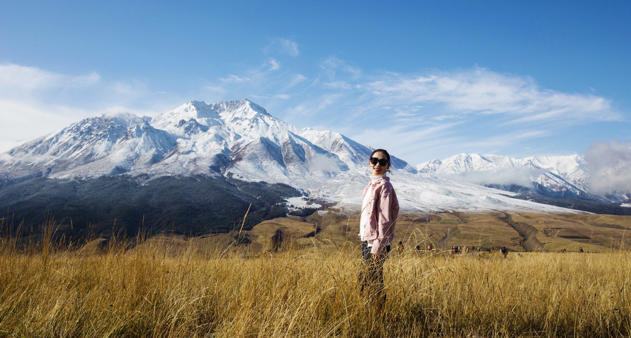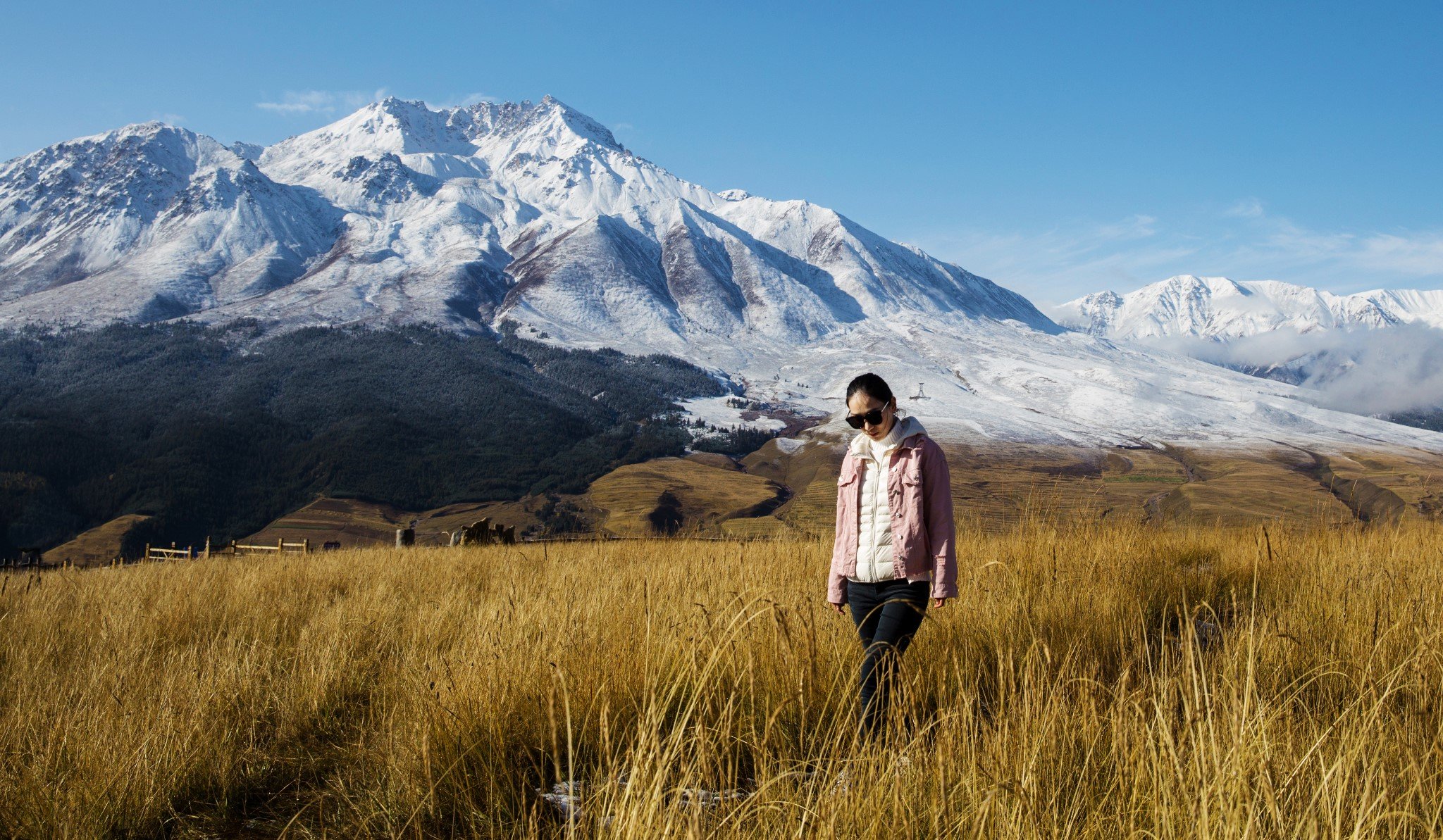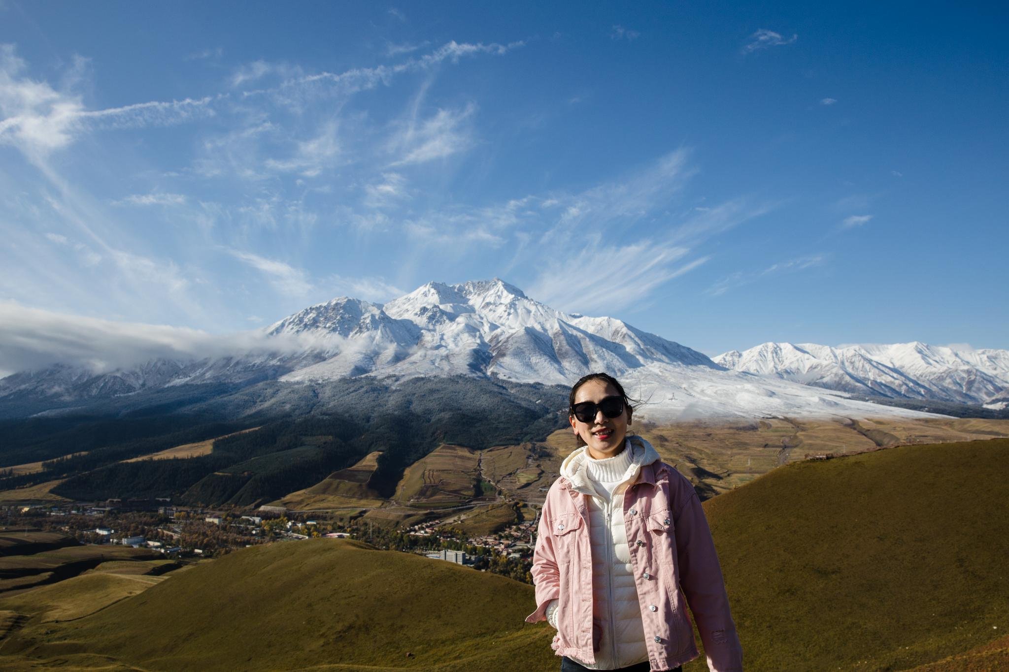 今天是个大晴天,前一天又下了小雪给雪山“加戏”,简直不能有比这更好的天气啦。