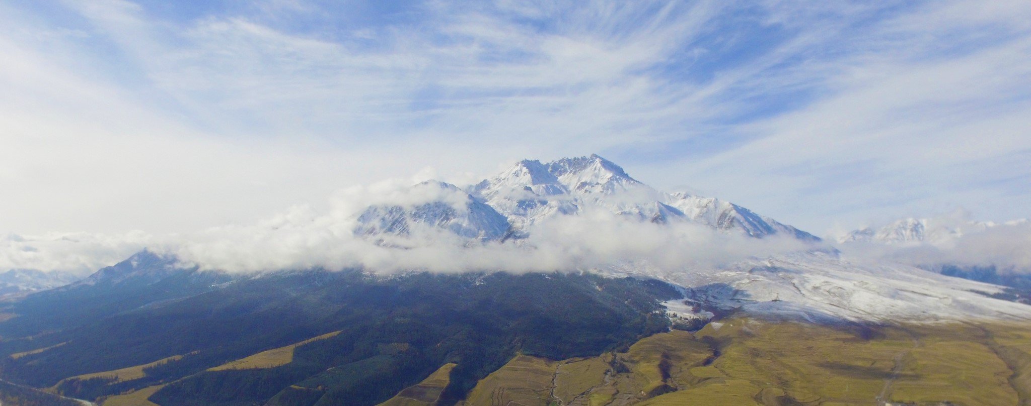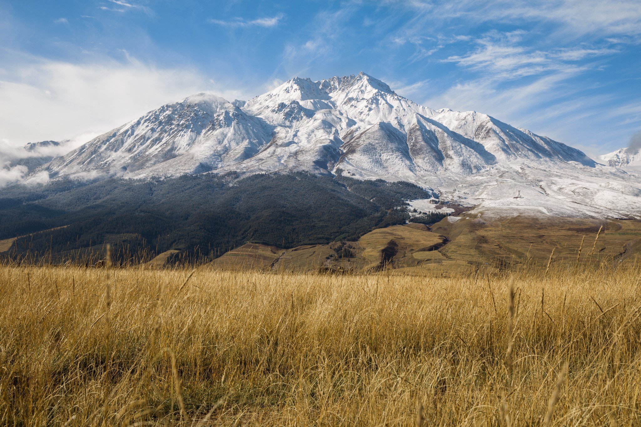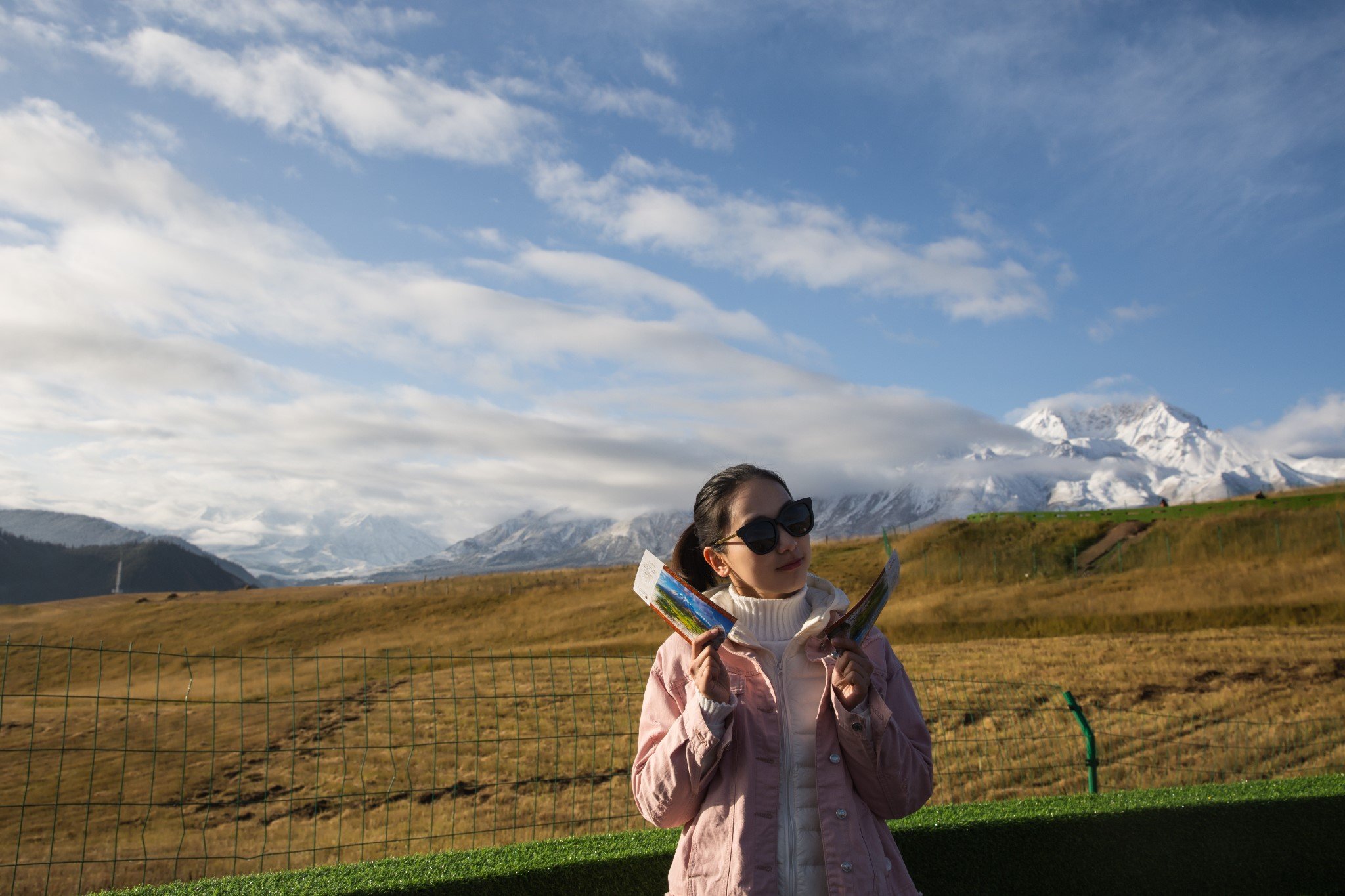 今天是个大晴天,前一天又下了小雪给雪山“加戏”,简直不能有比这更好的天气啦。