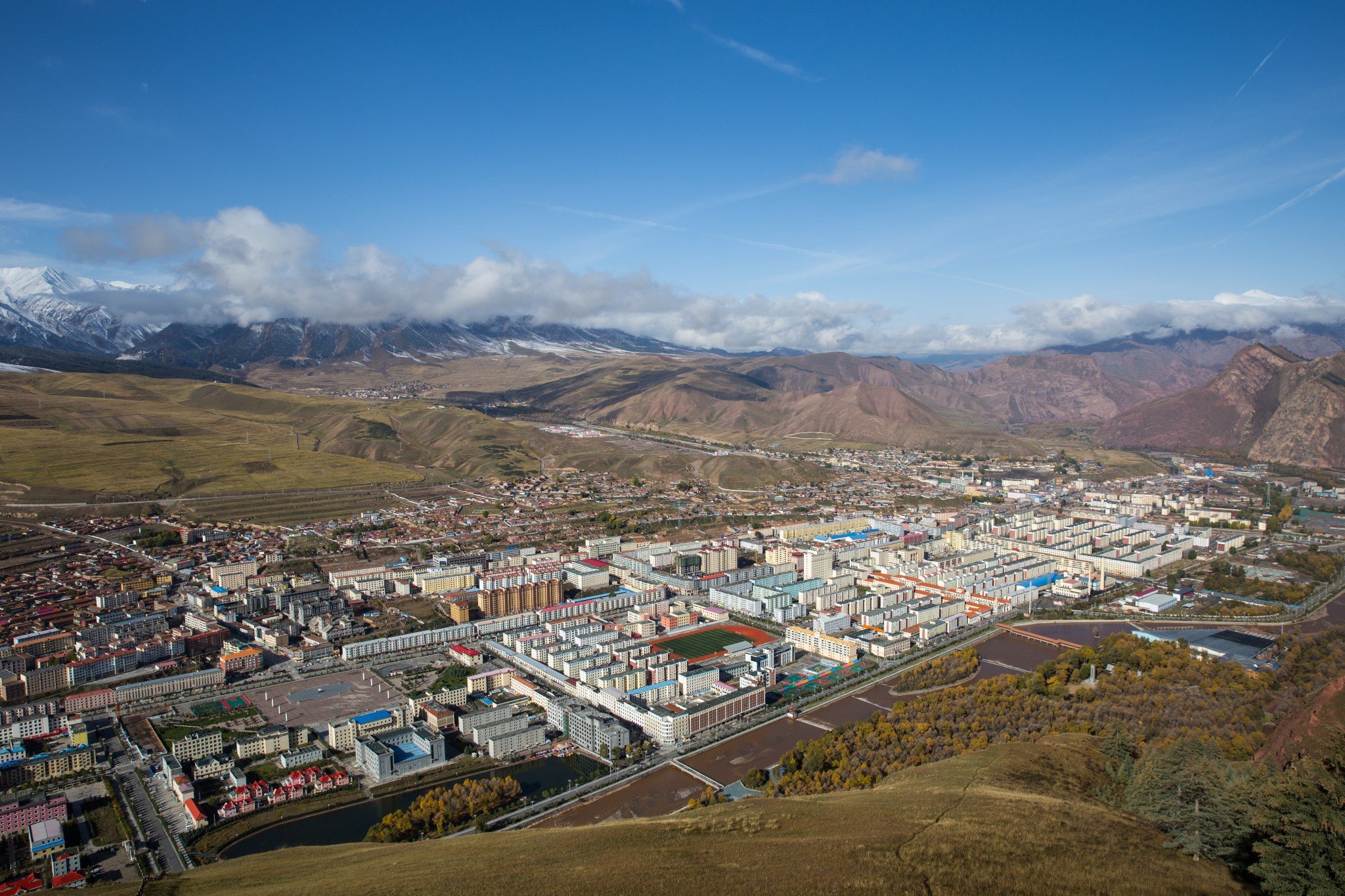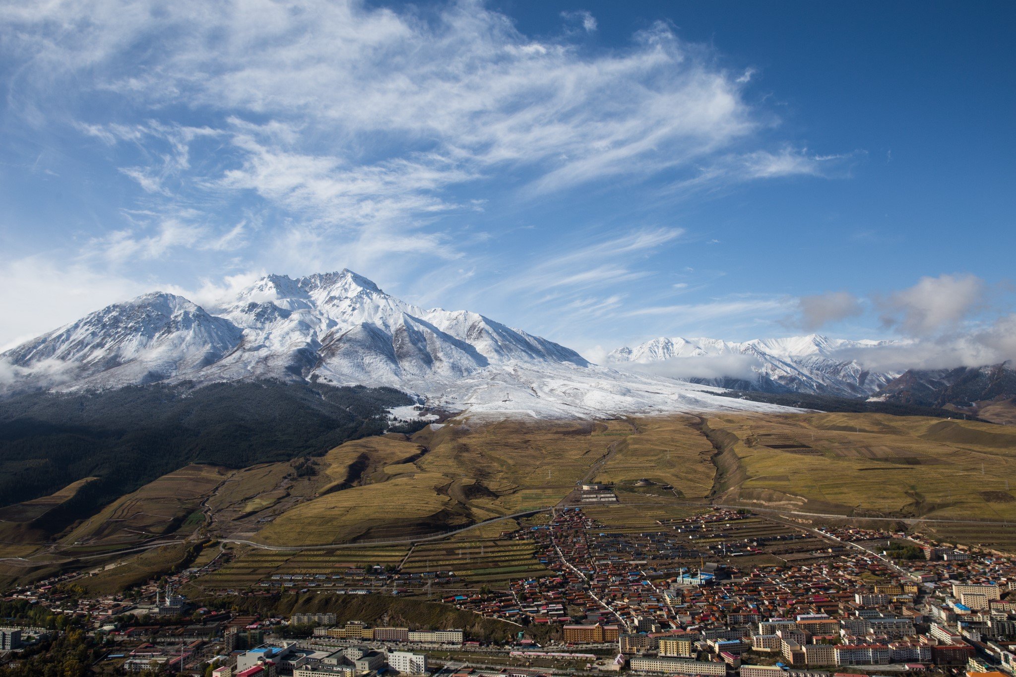 站在山上看下面的祁连县城