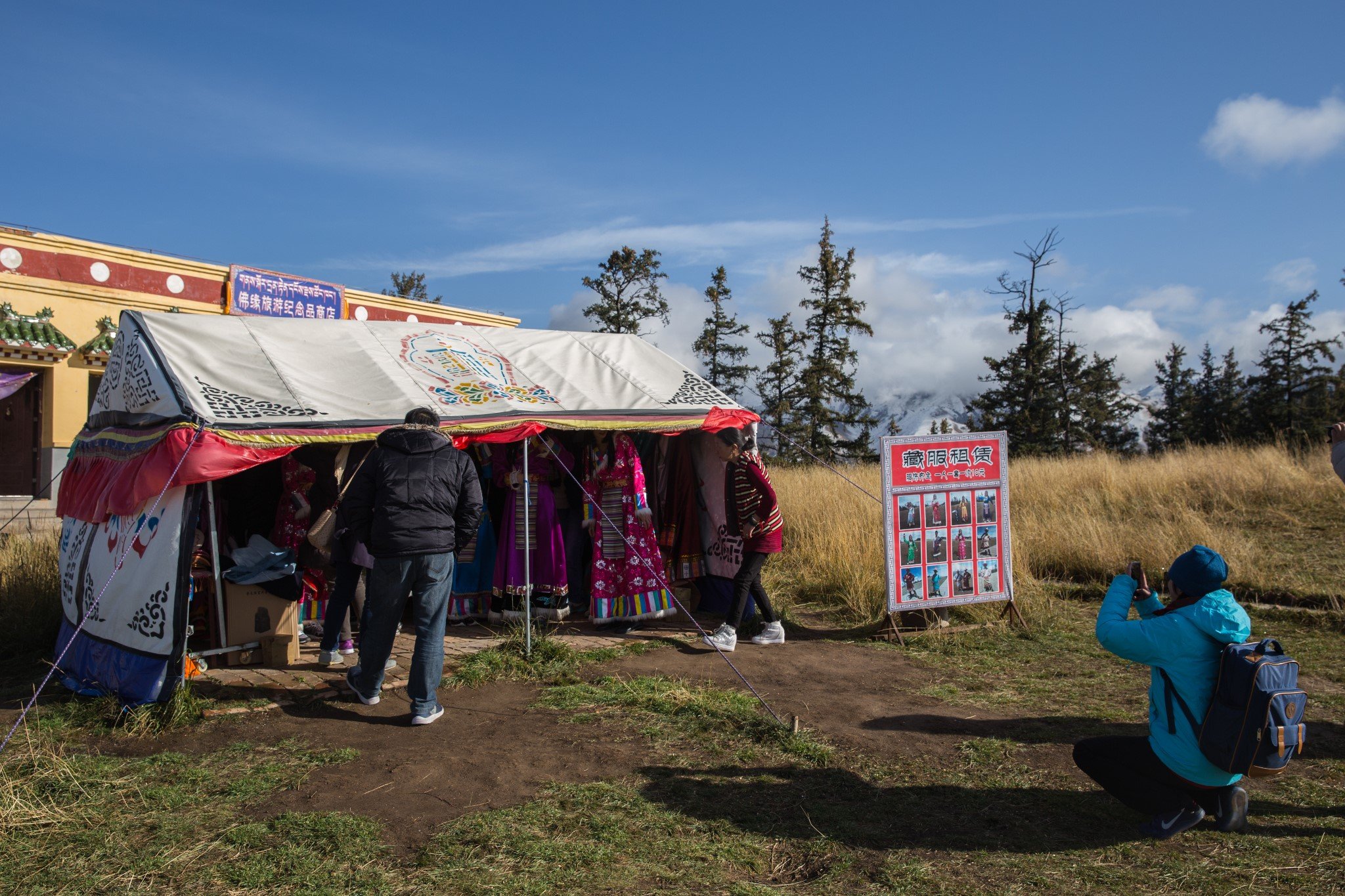 景区里还有租藏服拍照的摊位,记得是10块钱一个人,挺便宜。