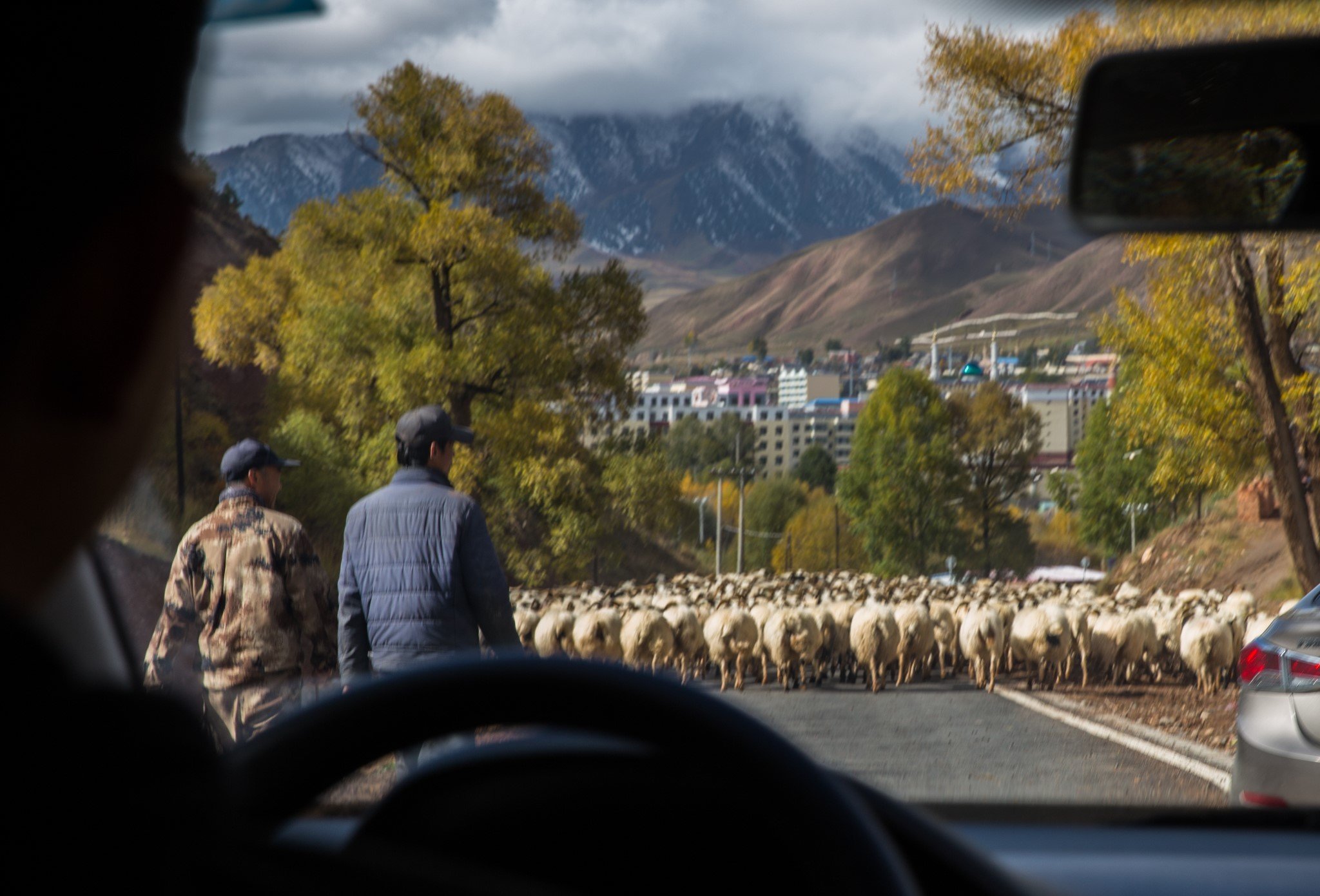 从山上下来,又被一群羊堵了路。平时生活在城市里,每次看见这些动物就很欢喜,简直跟吃到了好吃的羊肉一样开心#你们虚伪的人类#