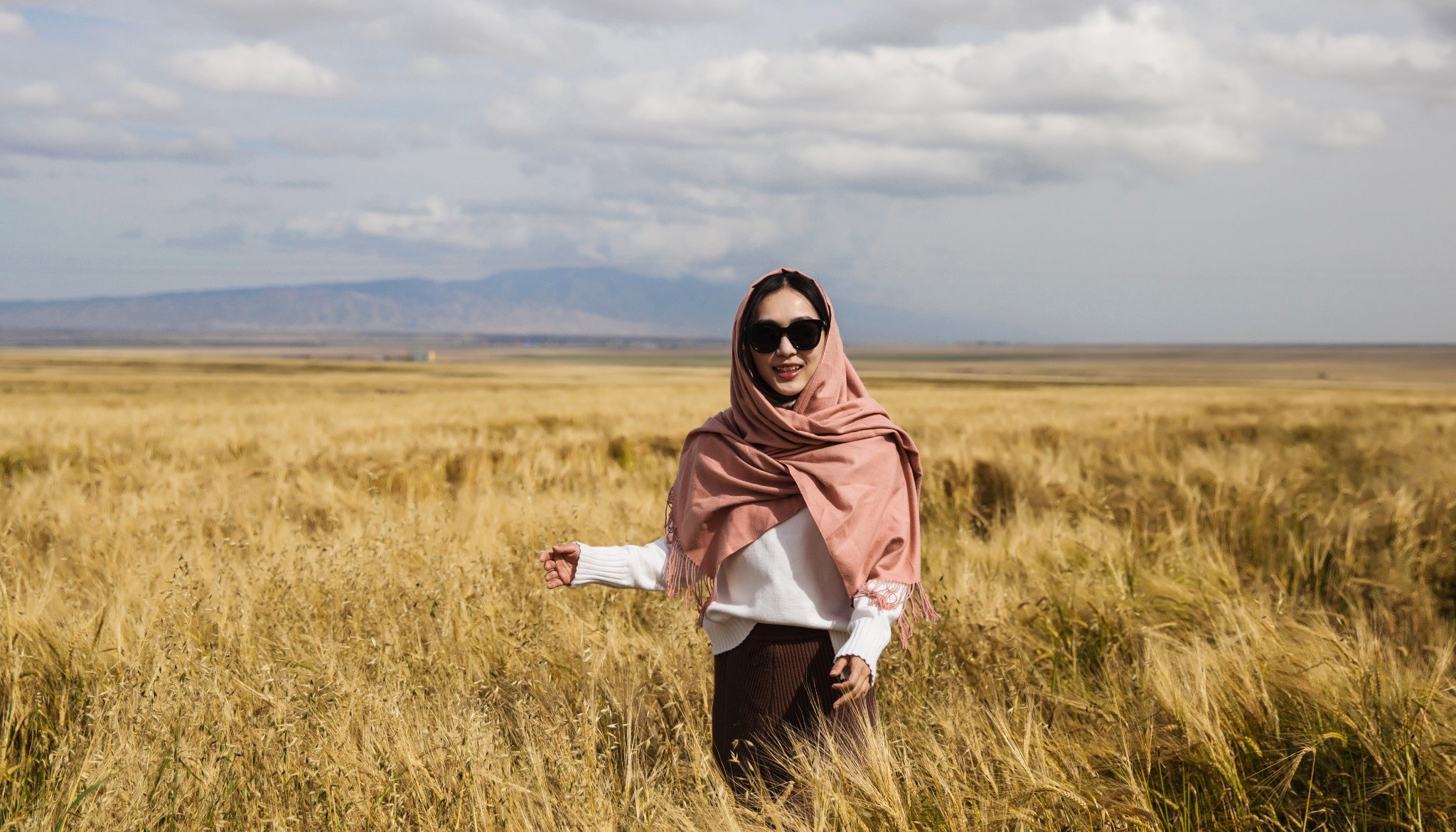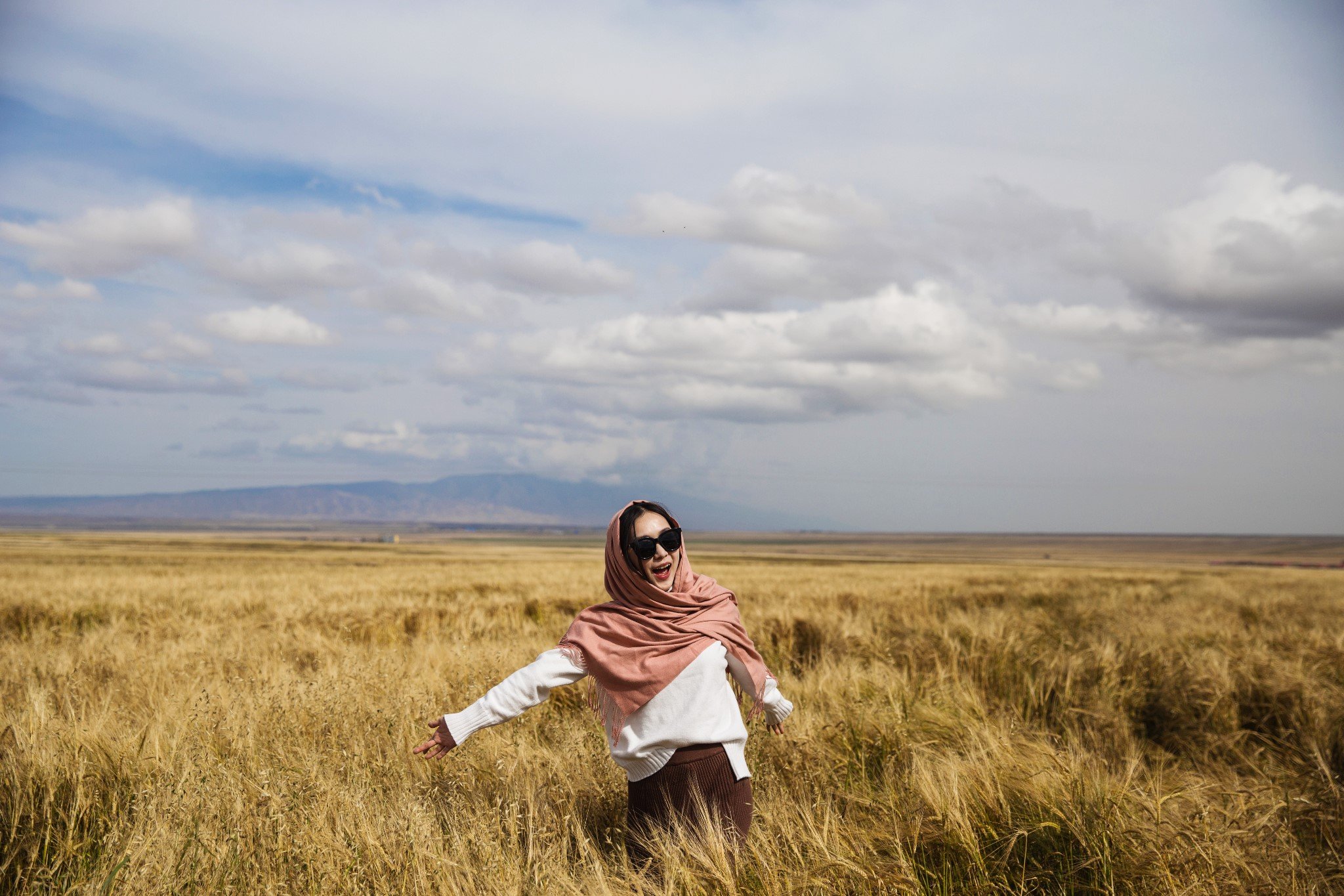 刚翻过山,看到一大片麦田,真的是一望无垠,看不到边际。在大西北,虽然每天都要在路上很久,但风景也在路上。