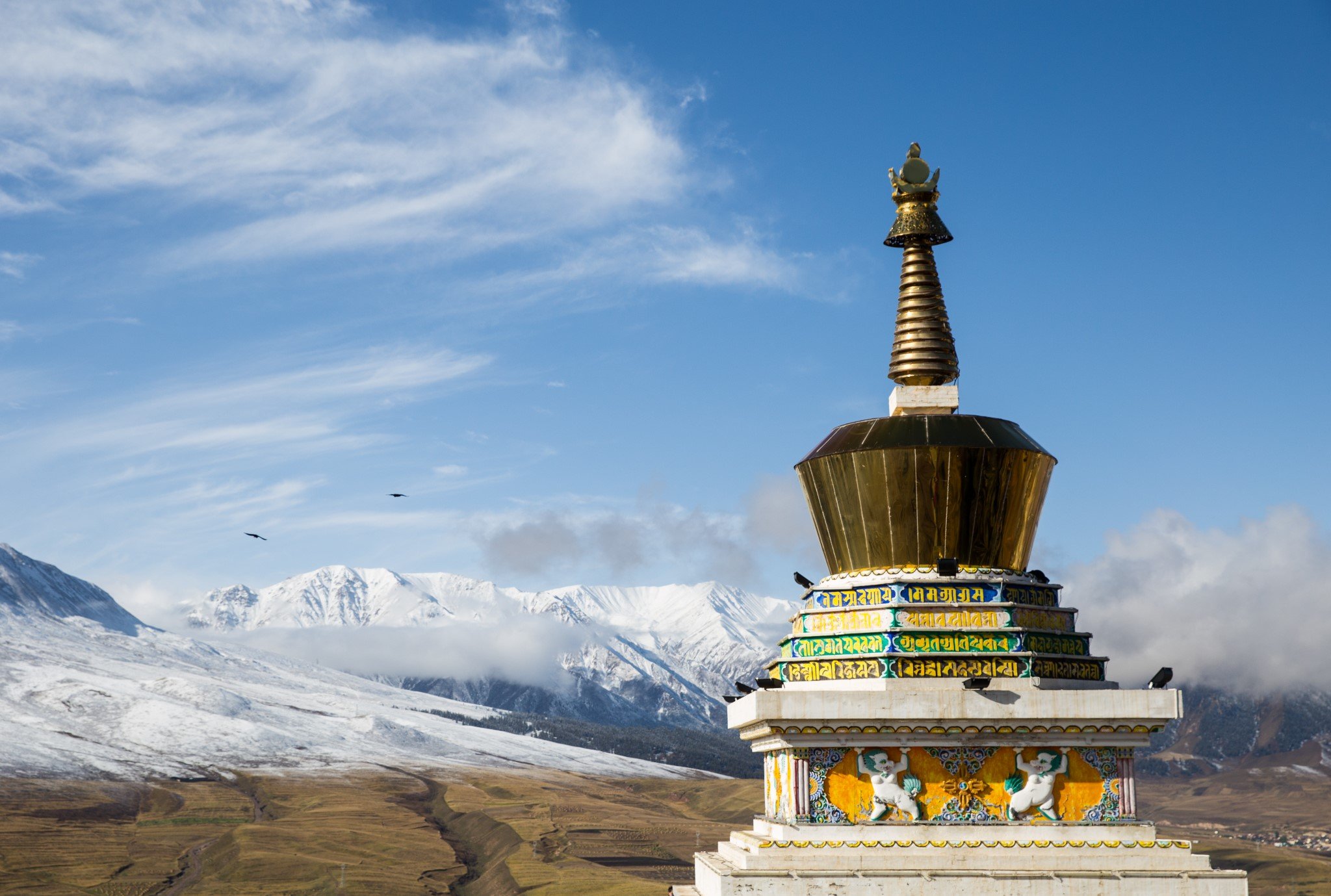 塔上落的都是乌鸦……刚进景区时,看到山下一片草原上成群乌鸦一起飞起来,场面有点儿吓人。