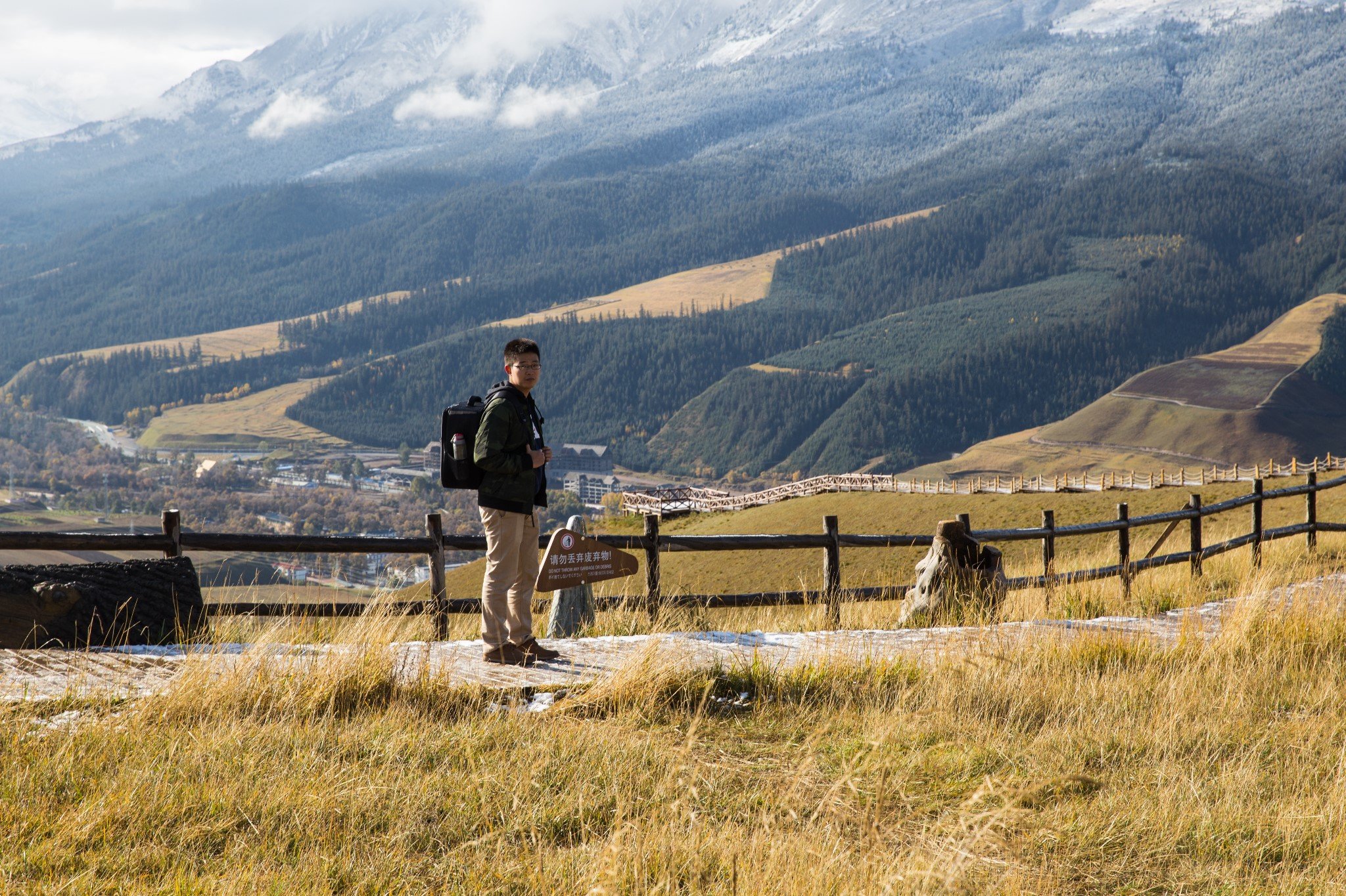 到了景区停车场,我就抓起相机要拍雪山,招呼我们上景区摆渡车的师傅一看我就是没见过世面,说:上去再拍,上去更好看呢!