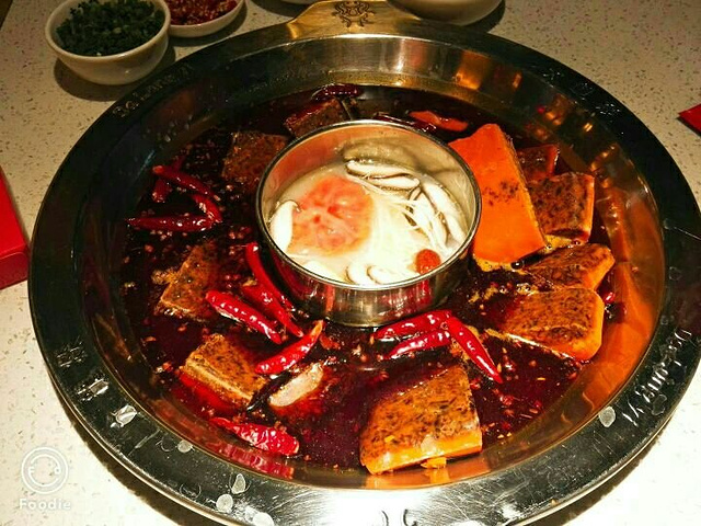 闺蜜成都回来一直说好吃好吃,去不了成都,就来这里过过瘾吧。晚上6点多过来还有位子,点了锅中锅,外面要了中辣…调料干碟香油都取了,火锅标配嘛! 火锅必点的毛肚,千层肚,鸭肠,黄喉,鸭血是麻辣火锅的必备,食材都很新鲜,刷几秒就捞出来,好吃! 上脑,牛眼肉,那个雪花纹路太美腻了。 牛蛙一盆大概3个,都很大个,肉嘟嘟的! 吃完还可以去门口的罚站7秒去去味,被喷后香香的。