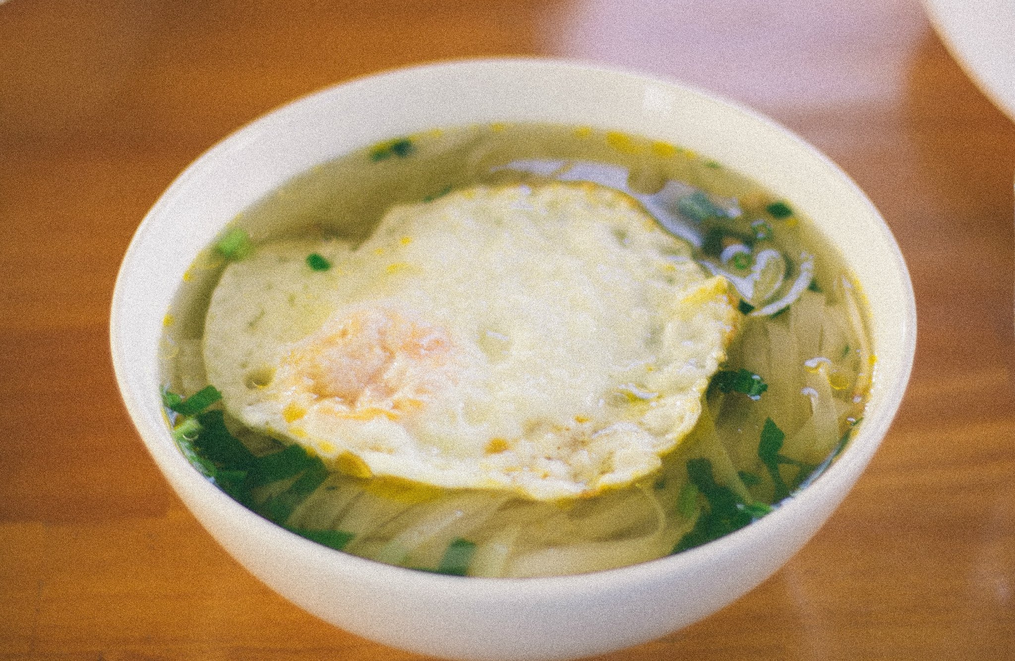这个粉口感确实和国内的一般粉有些不同,挺有嚼劲,清清淡淡的,很适合早上,蛋也是流心蛋,煎得很棒