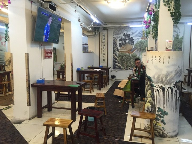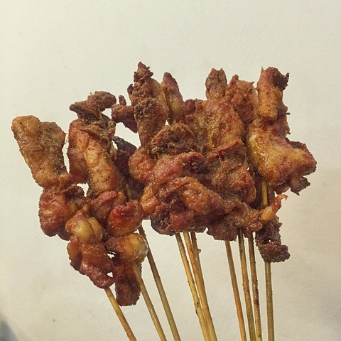 📍油炸羊肉串 关于宵夜,我倒是知道不少,但真要某个特定位置的,还真要现去摸索。油炸羊肉串也是济南一特色了,从白老太,四海香,老一百,四爷,许记俊发到二雷子,没被我发掘过的油炸串还会有很多…… 夜21:40分,打电话确定还在营业后立马赶到,位置在经四纬九海右重华旁边,纬九路单行,旁边有停车场。 羊肉串售罄,牛肉,鸡肉,掌中宝各来10个,都是3元一串,没成想串的个头那么大,基本上我自己只吃了一半,剩下的打包回家了…… 秘制鸡肉吃三串就会觉得腻,相比其他串类油略大,瘦肉部分少,但香脆。牛肉味道还不错,撒麻椒粉有点儿不一样的感觉,掌中宝味道一般~ 从口味来讲没有惊喜没有失落,属于一般偏上的那种,服务很好,店应该是新装修过的,总体三星半吧~