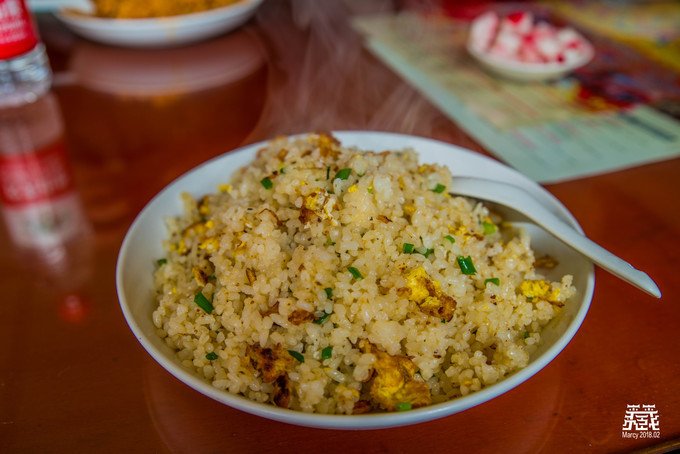 超级大的一盘蛋炒饭端出摆在我眼前,其貌不扬的,可是味道却出奇的好吃!!!而且炒饭我不喜欢盘子底下一层油,这份蛋炒饭很符合我对炒饭的要求,抛弃在高原不能吃的太饱的原则,我一扫而光,在吃这件事上,我只有一个原则,绝不能浪费!!!嗝~~