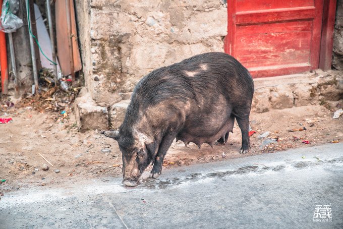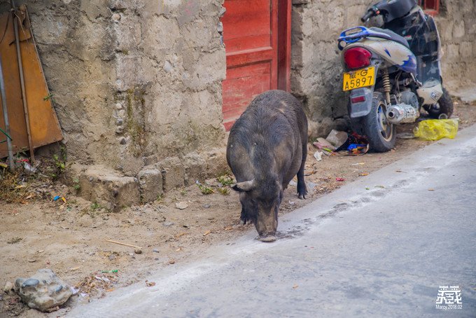 最开始并不知道原来这就是藏香猪,真正藏民家养的藏香猪都是溜达猪,在人烟稀少的街路上,藏香猪倒成了主角。