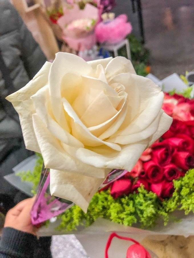 小男生偏偏要送我们俩玫瑰花,拦都拦不住的那种,哎呀,大情人节的,你说这多不好意思呢~