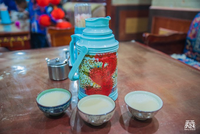 藏族的老板是个大概30岁左右的男人,会说汉语,跟我们介绍了一下还可以做的东西,哪些适合汉族人口味。酥油茶我们想点甜茶,但是没有了,那就来当地人都喜欢的酥油茶,酥油茶口感偏咸,建议点量最少的先尝试就可以,不是所有人都能喝的惯酥油茶,听说酥油茶还可以缓解高原反应,当时我喝了两杯倒觉得有点腻有些上头。