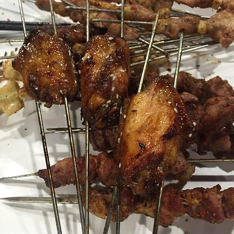 📛惊蛰,用一顿烧烤庆祝下三月的开始。 这家店有年头了,从露天到现在有店面,可是经历了不少,晚上就餐人数还是不少的,嗯,撸串是济南特色,我也是其中一员啊~ 来的时候有点晚了,朋友们已经吃起来好一会儿了,肉串让重新加热了下,马马虎虎的水平吧,素菜炒的也是一般,焖饼是炒的不是焖的,味道普普,惊喜的是干炸里脊,实实在在的里脊肉,酥软可口,这个推荐~大厅里是接地气的桌子马扎,服务还行吧,还能看球,就是电视有点儿小了,该换个投影啊~