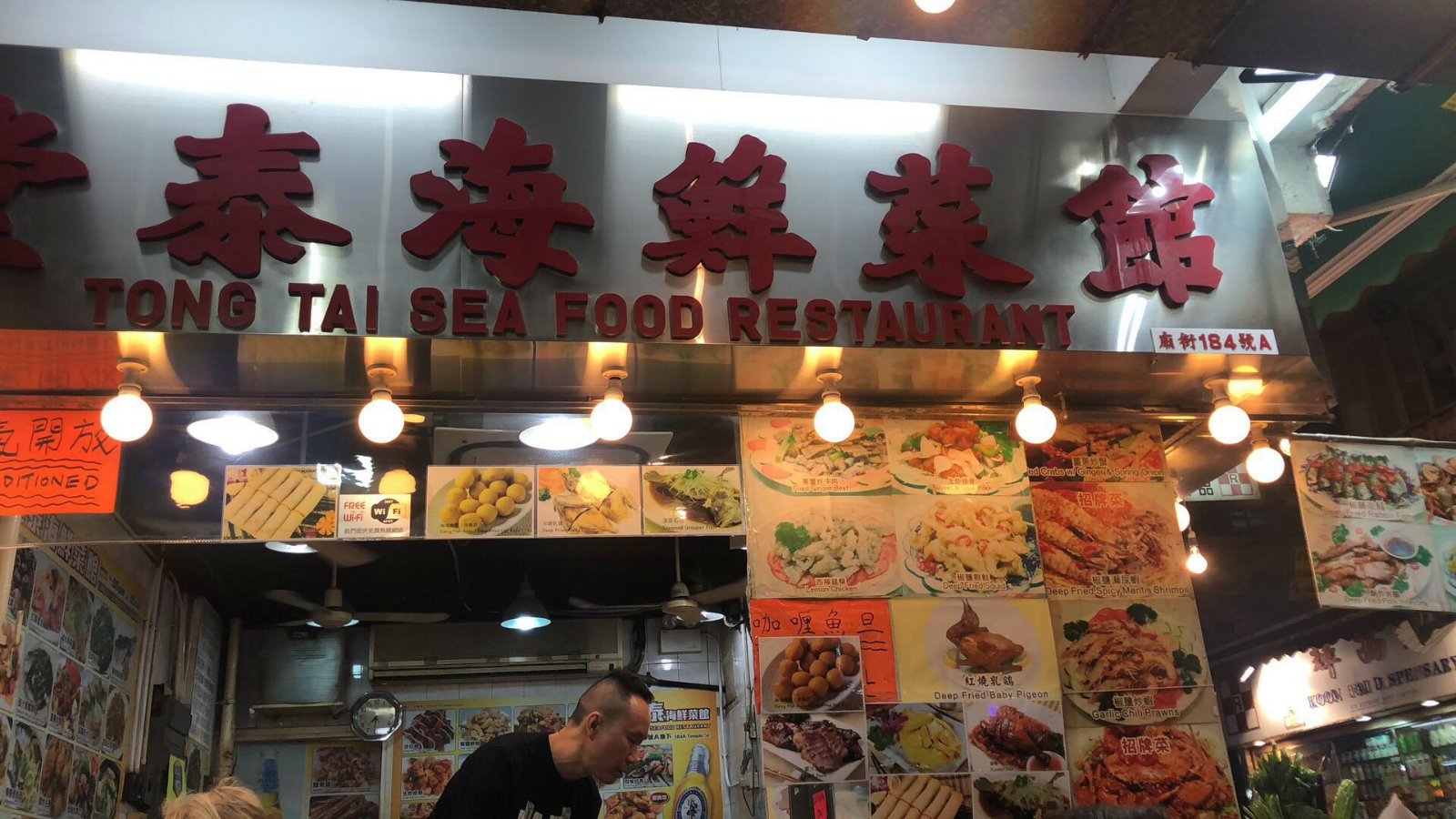 海鲜都挺生猛的,点餐的时候会带你去看过实物。价格没有和别家对比,就不清楚了,我们三人吃,人均两百多,有点贵。实力推荐他们的避风塘炒蟹和干炒牛河,很好吃。咖喱鱼蛋不推荐,不正宗就算了,一点也不好吃。这家店WiFi很给力,网络稳定而且网速很快。在这里可以用微信和支付宝,还是比较方便的。