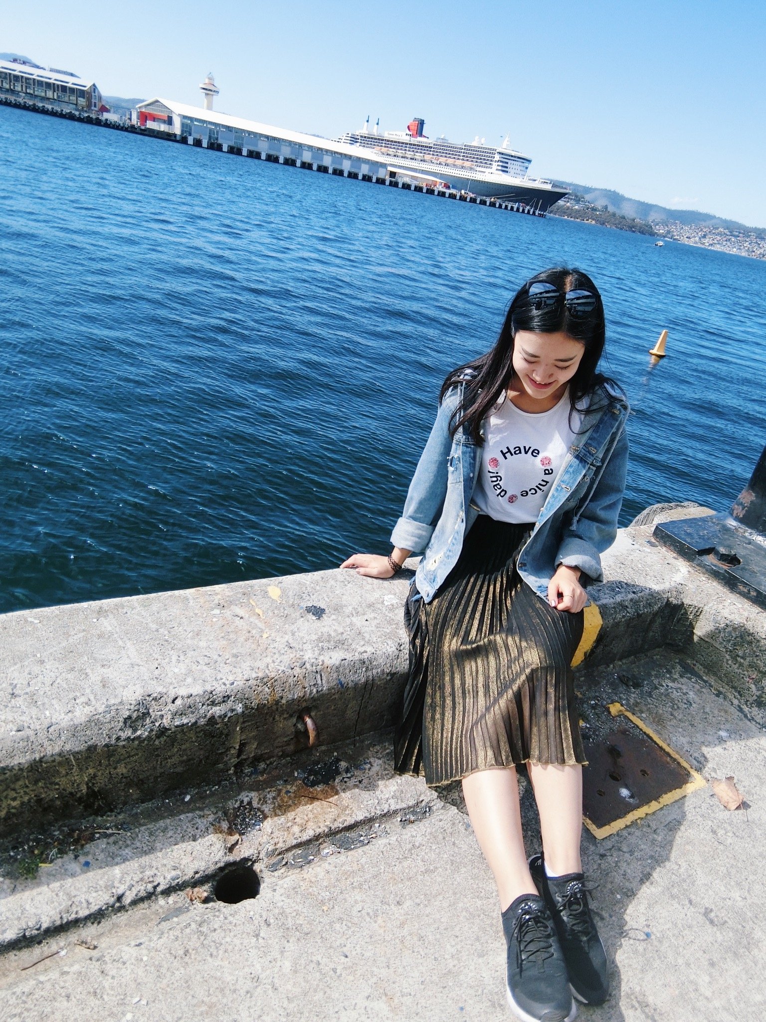 第一天的兴奋感,真是让我们五个卯足了劲的开始各种自拍~当看到仿古船和现代游轮同框,不仅哼着
