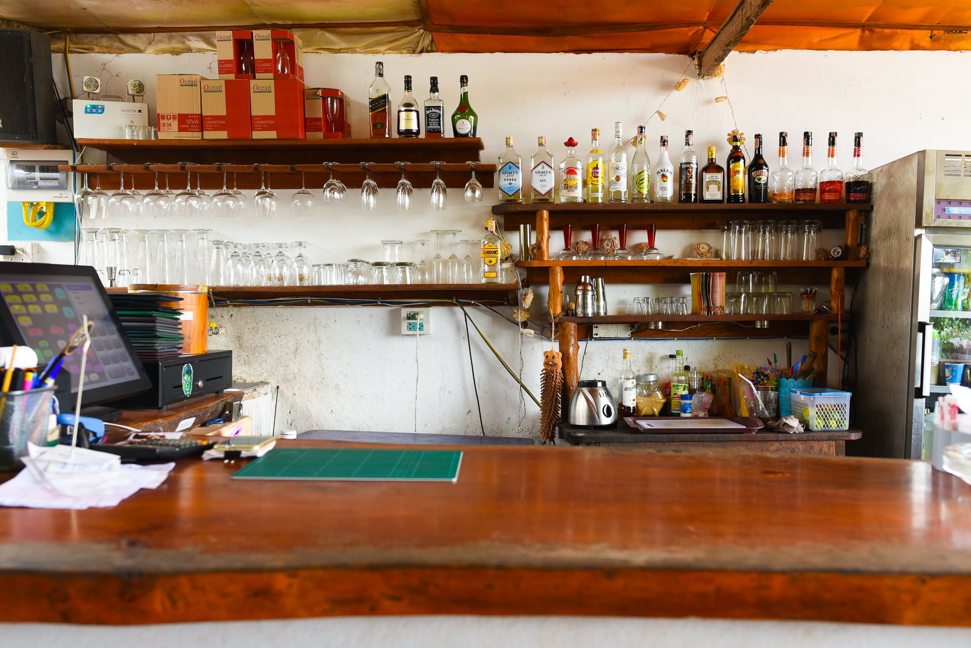 不容易找到上午就已经开门营业的一家餐馆啊!炎热的天气里,马上叫来一瓶啤酒和清水!我们在淡季来到兰塔岛