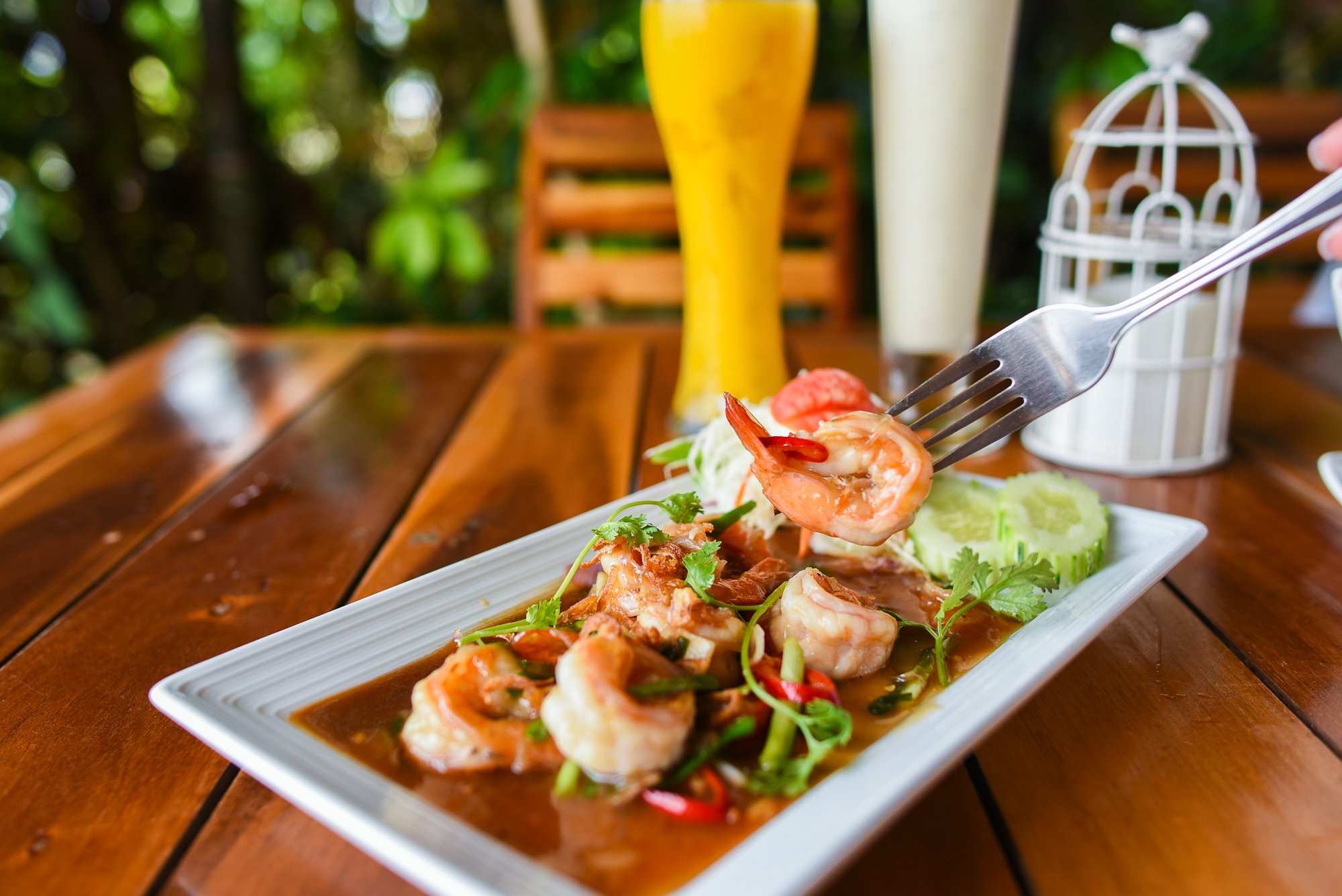 泰式罗望子酱炒大虾,非常local的一道菜,酸酸甜甜的罗望子酱搭配新鲜的大虾,爽口弹牙,配上冰冻的chang啤酒,超赞!