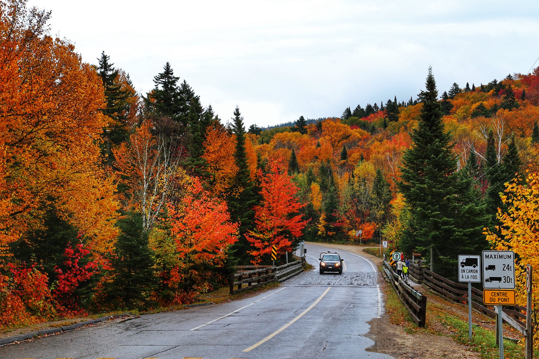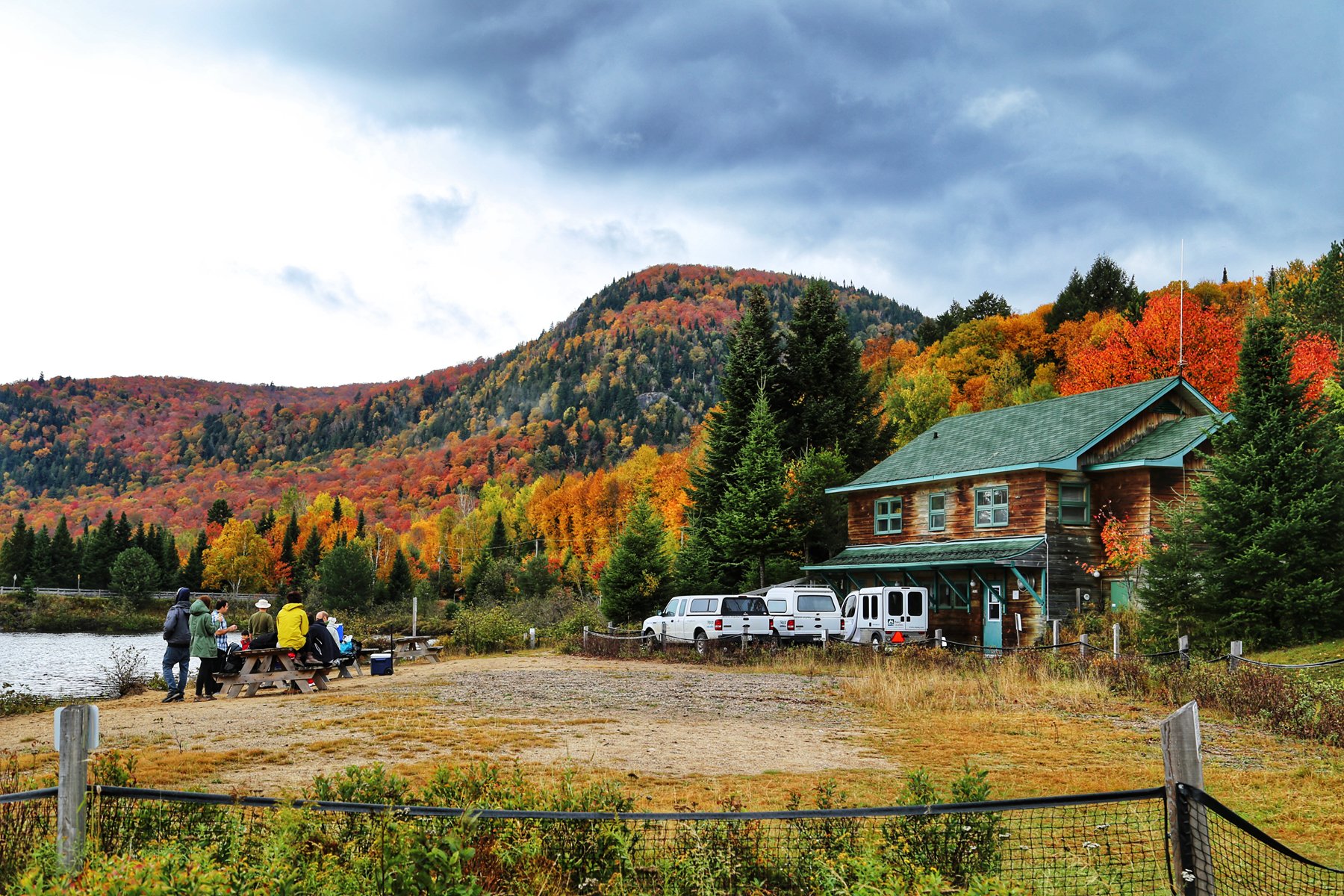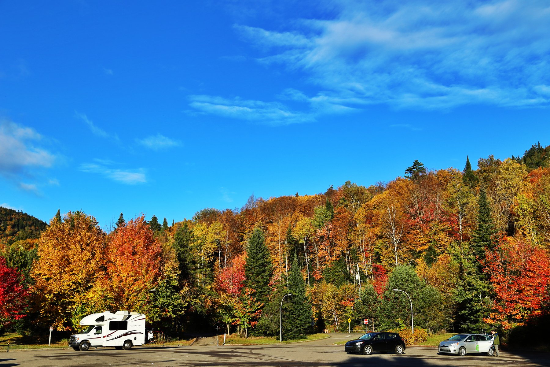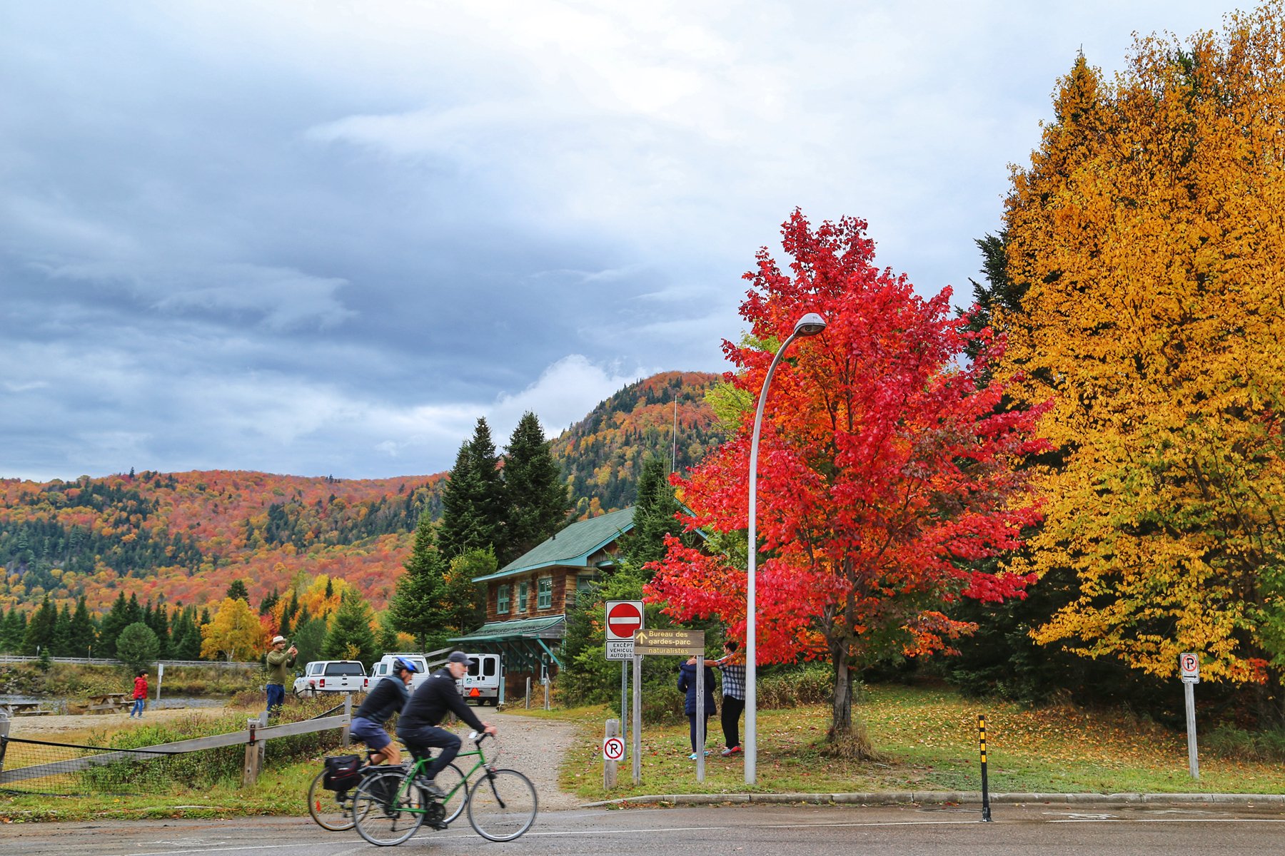这个也是加拿大一大观枫圣地,不过早上起来预报有雨,而且整个魁北克枫叶还没太红,加上今天整个行程...