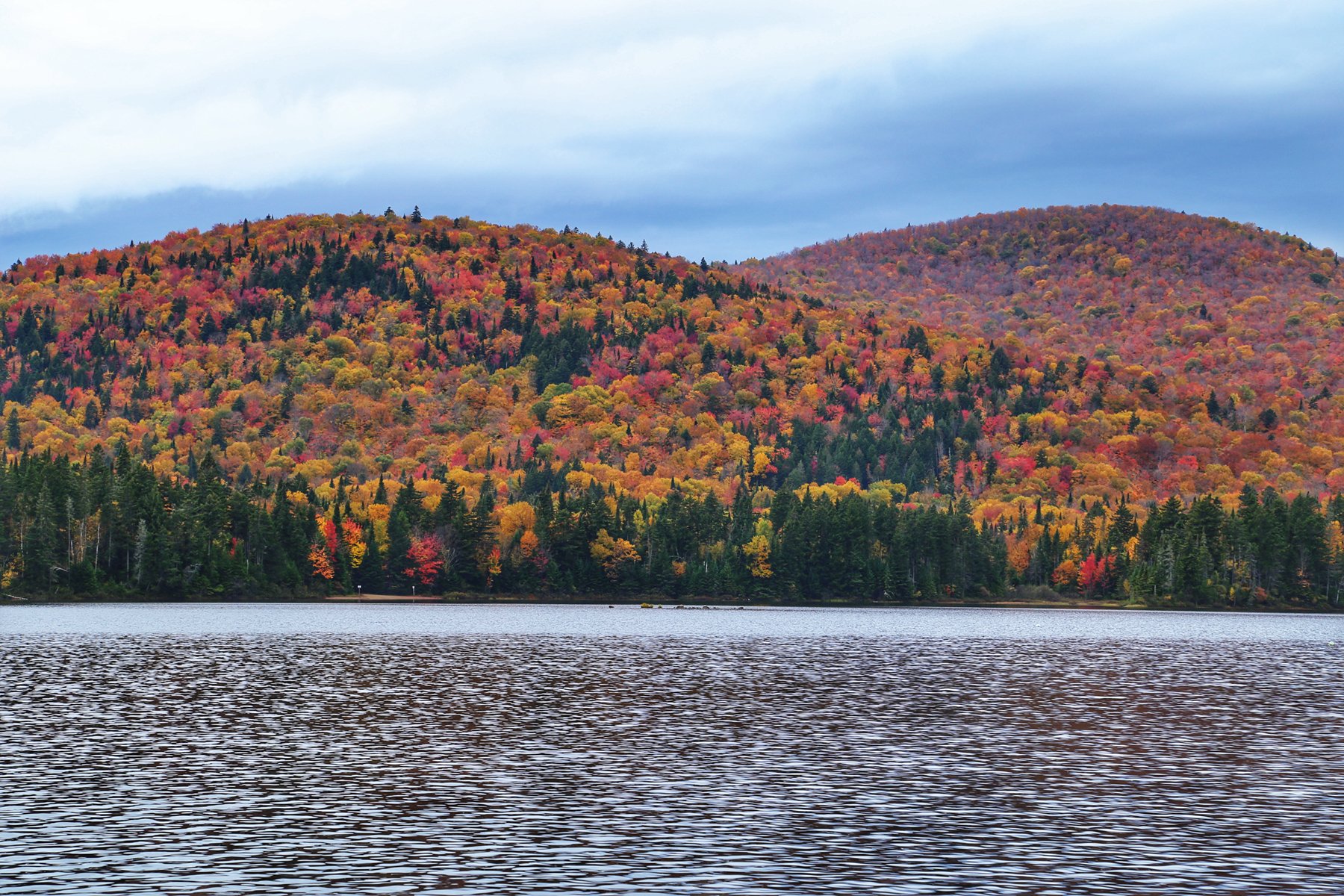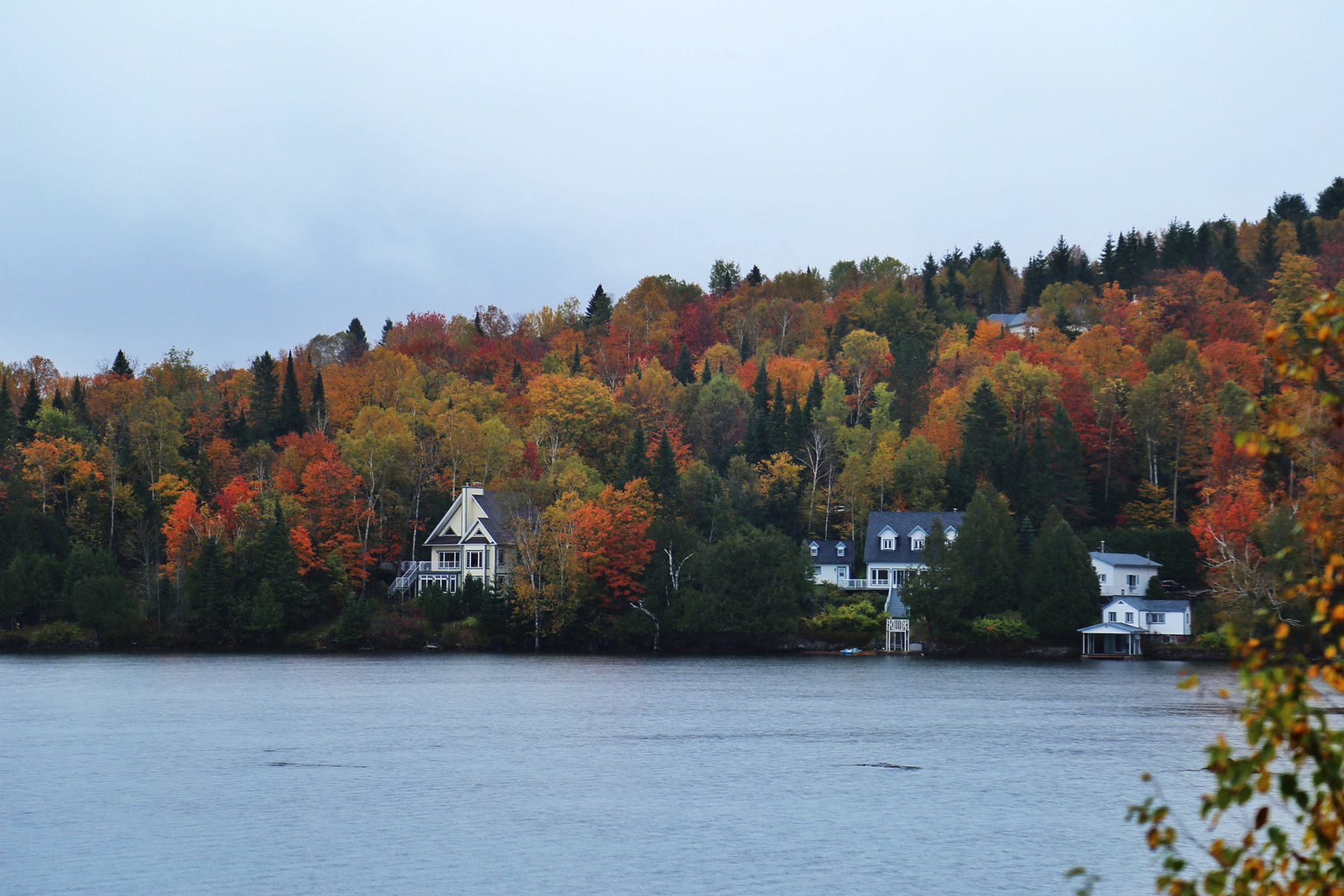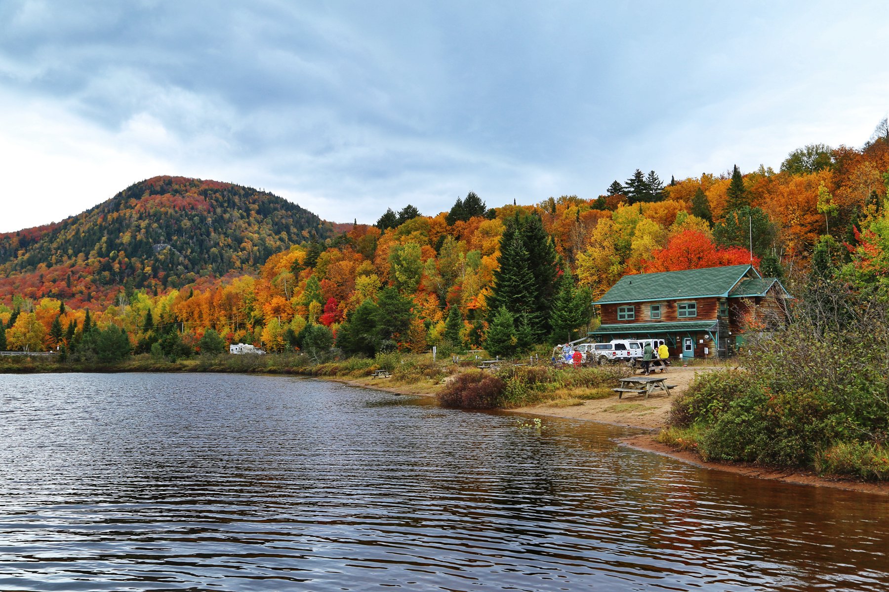 这个也是加拿大一大观枫圣地,不过早上起来预报有雨,而且整个魁北克枫叶还没太红,加上今天整个行程...
