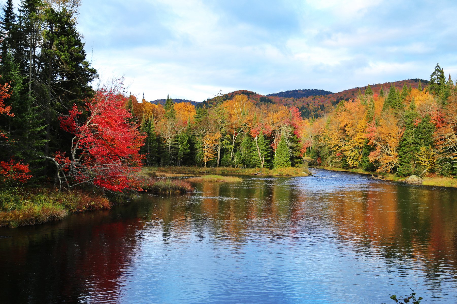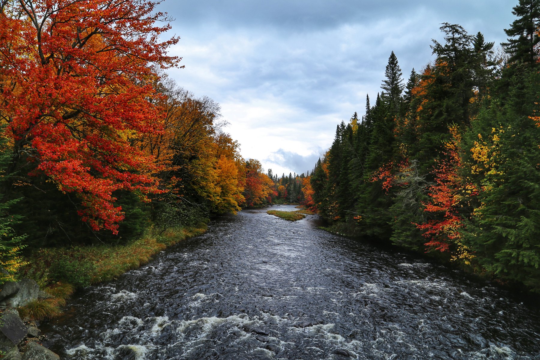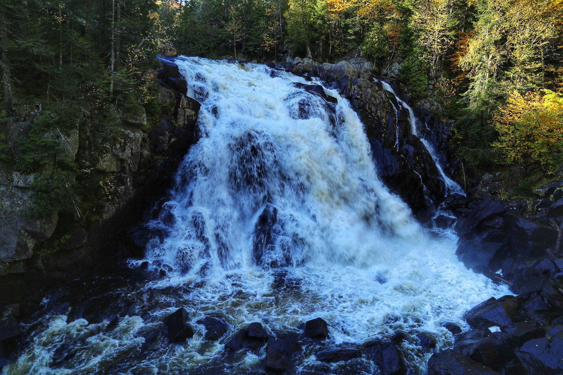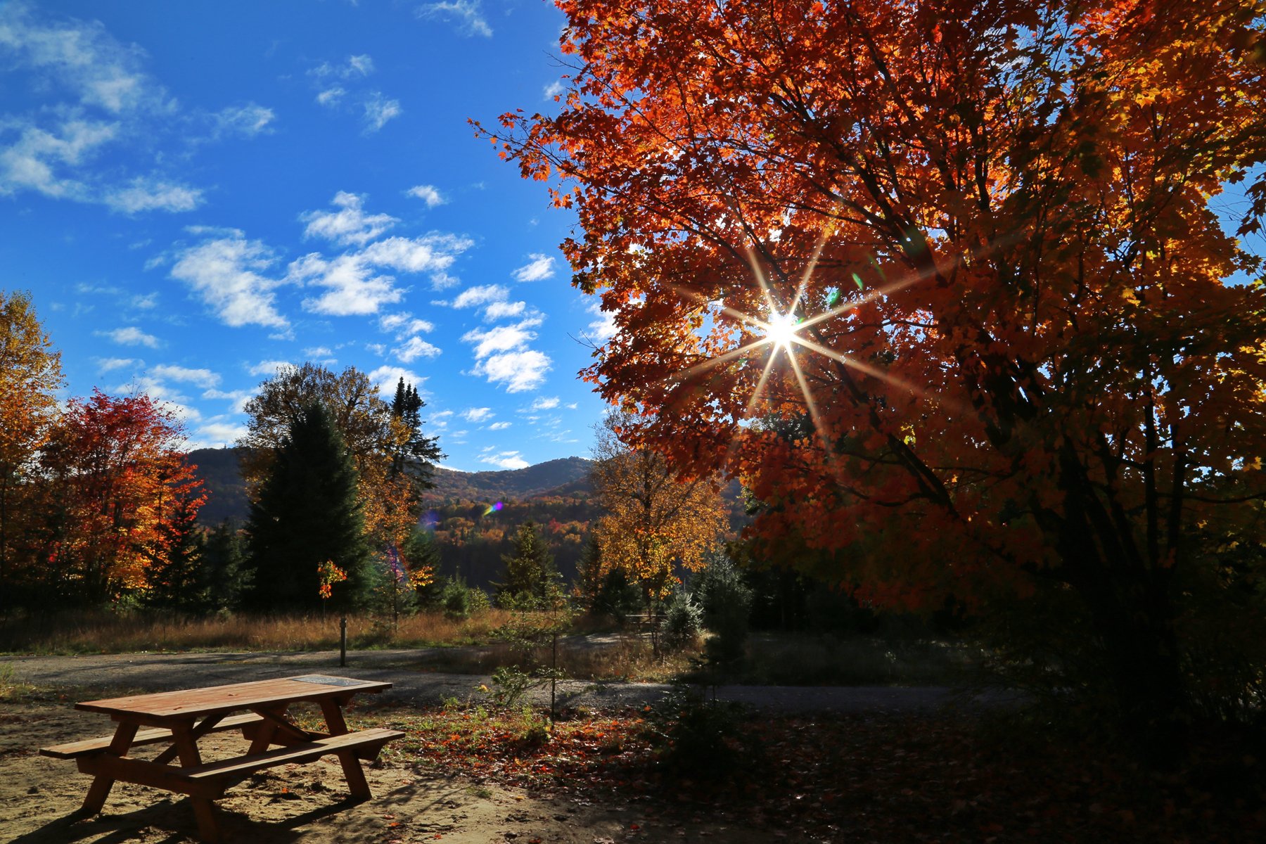 这个也是加拿大一大观枫圣地,不过早上起来预报有雨,而且整个魁北克枫叶还没太红,加上今天整个行程...