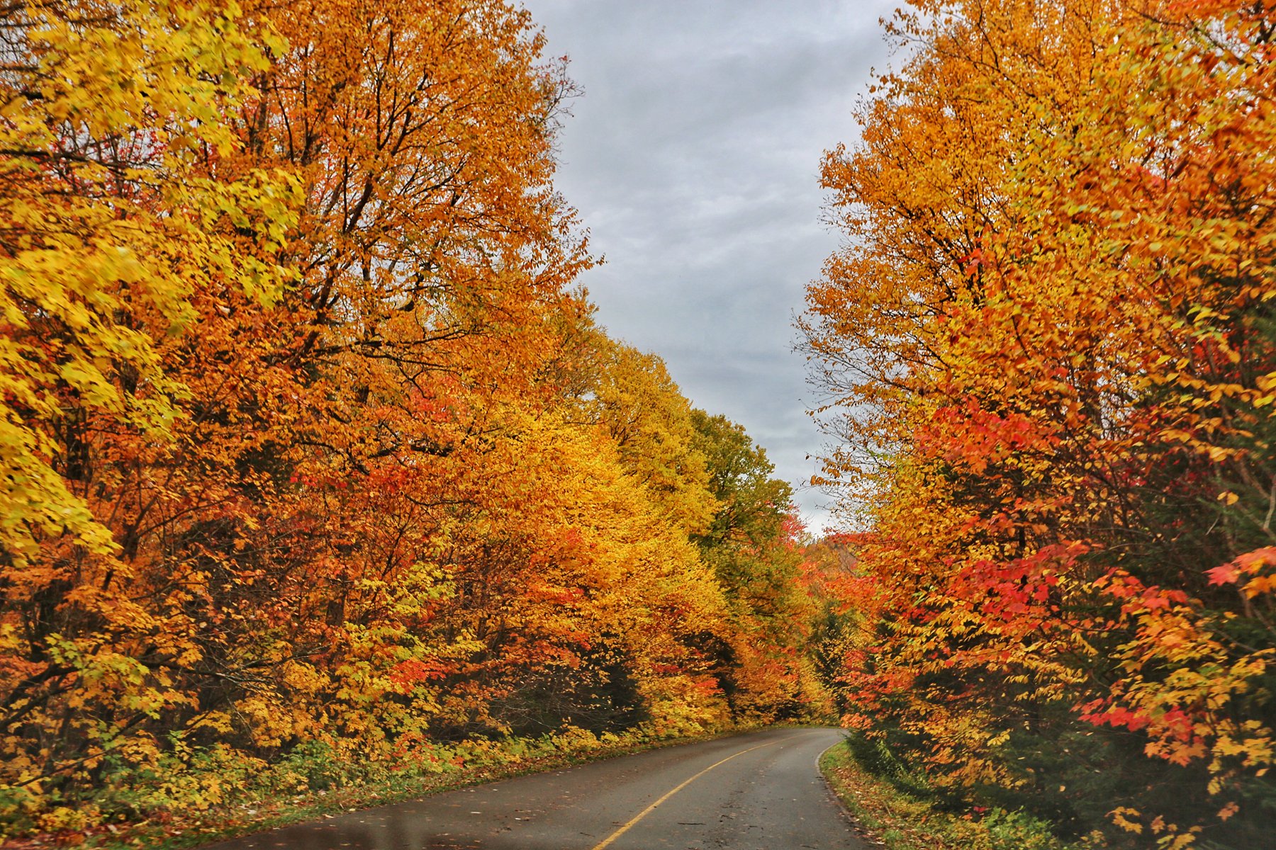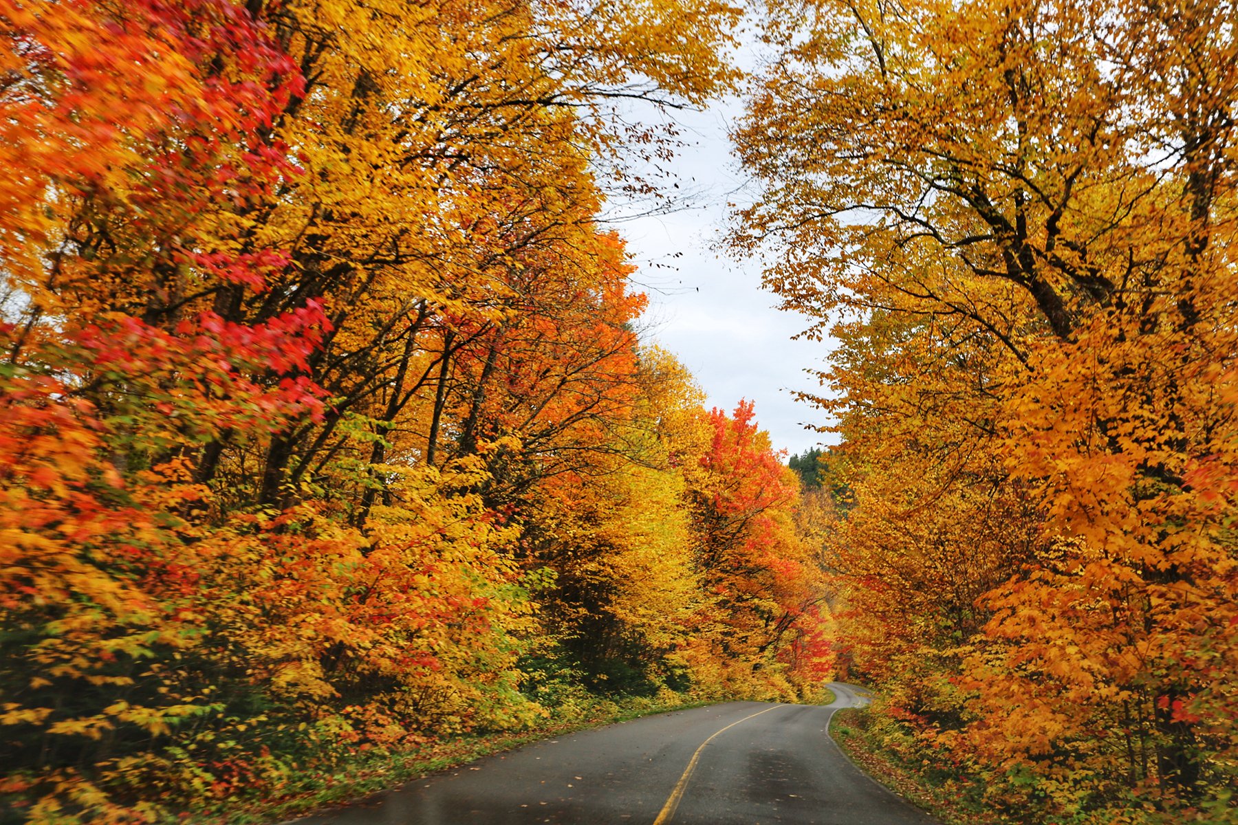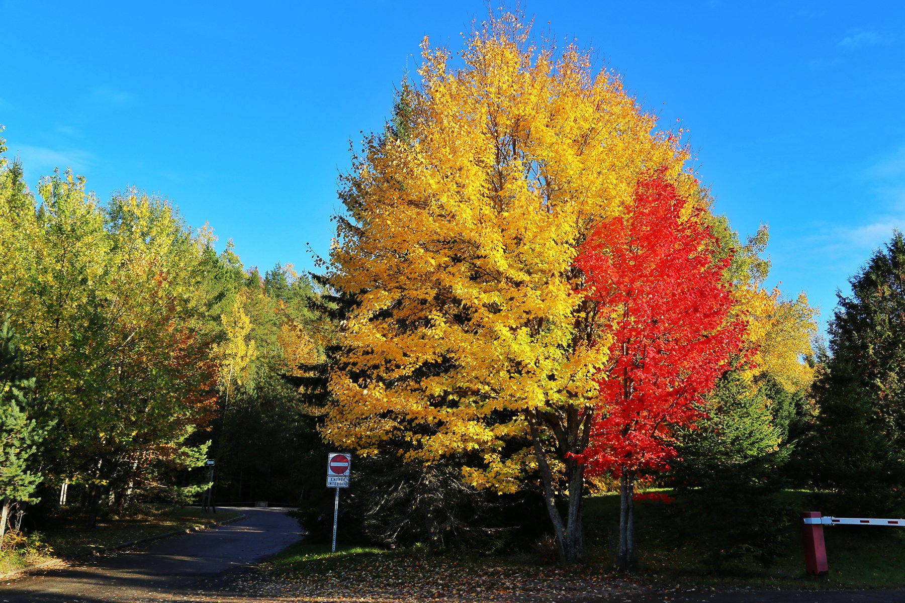 公园很快就没有了手机信号,就顺着路一直开下去,两侧的枫树和其他彩叶林遮天蔽日,美景使人陶醉。