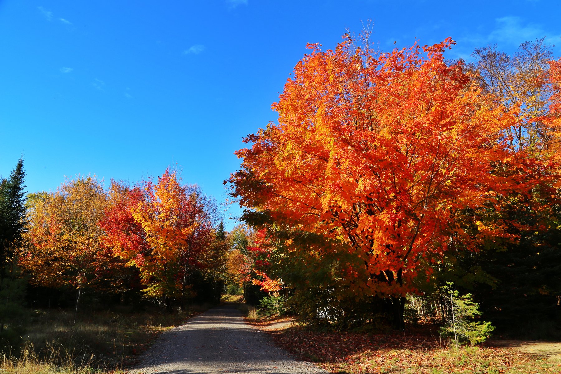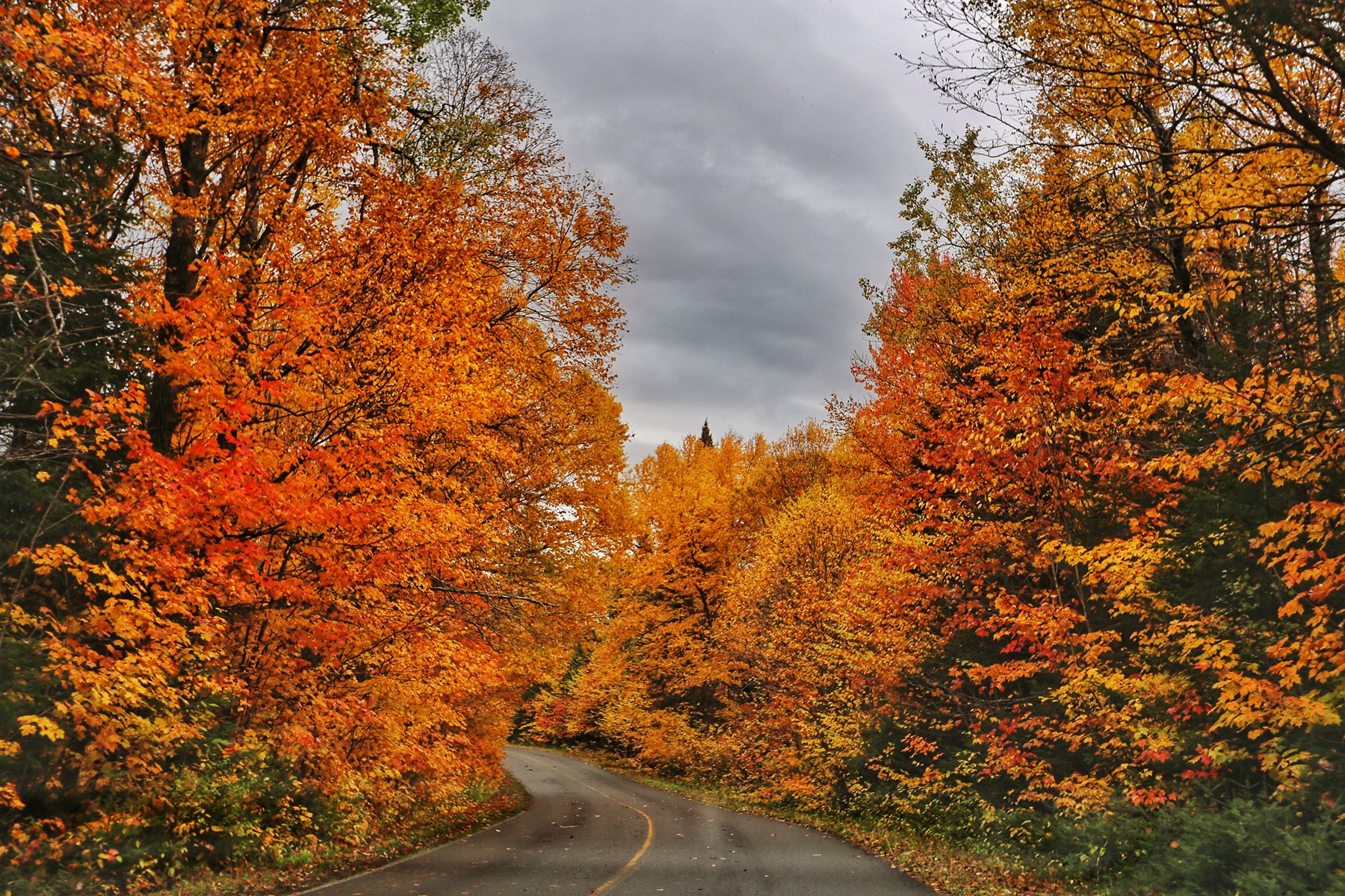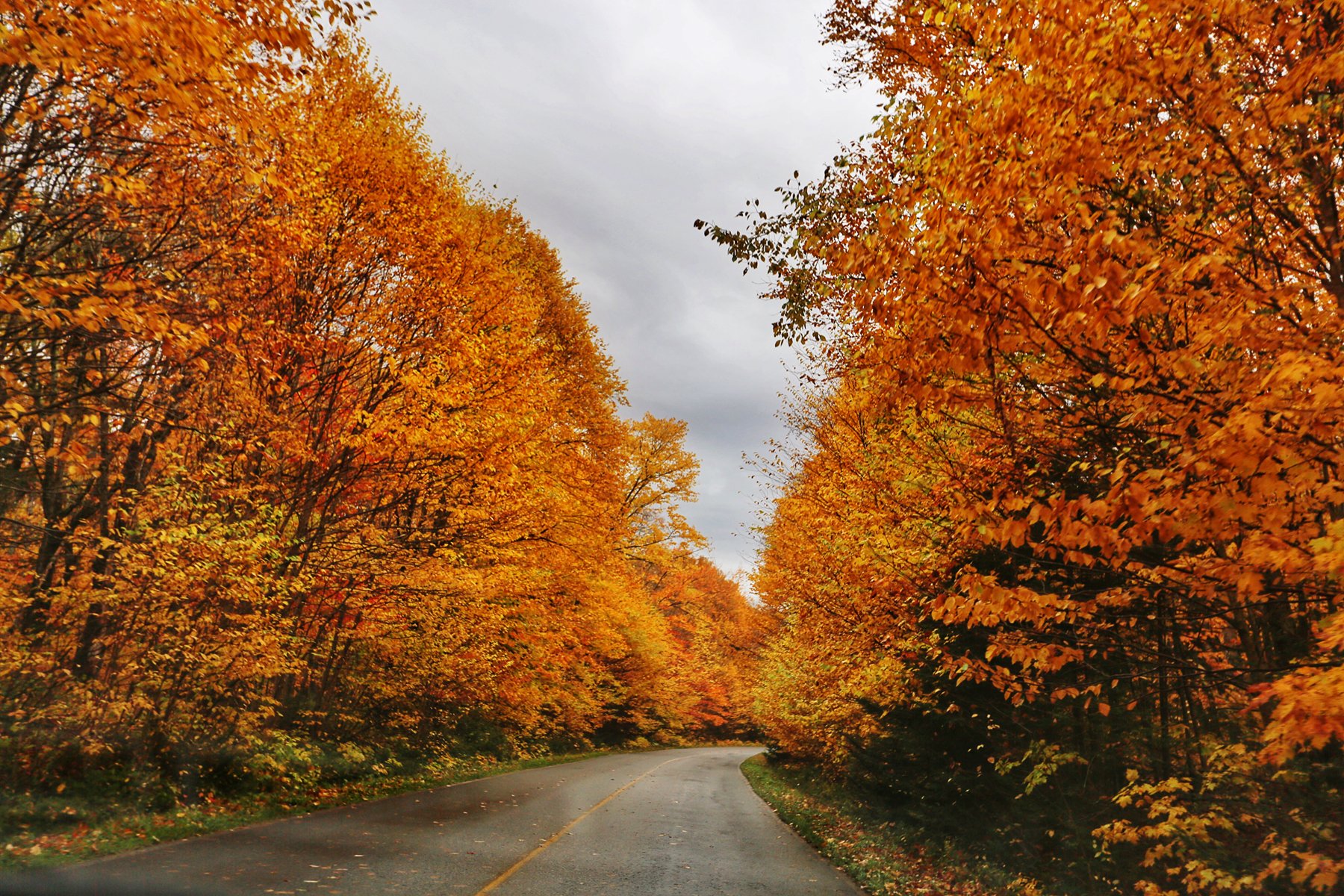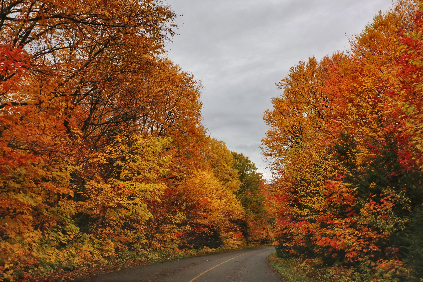 公园很快就没有了手机信号,就顺着路一直开下去,两侧的枫树和其他彩叶林遮天蔽日,美景使人陶醉。