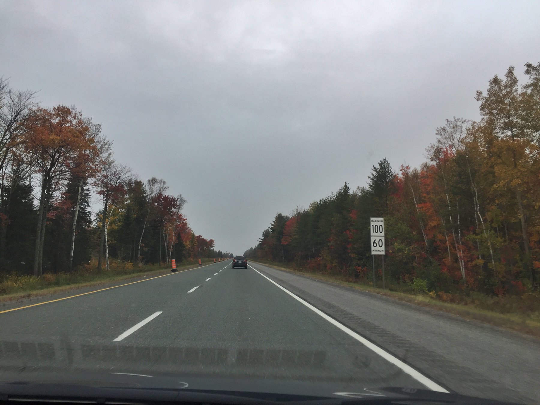 加拿大高速限行100km/h,当地车都是120km/h,我们也按照这个节奏开。