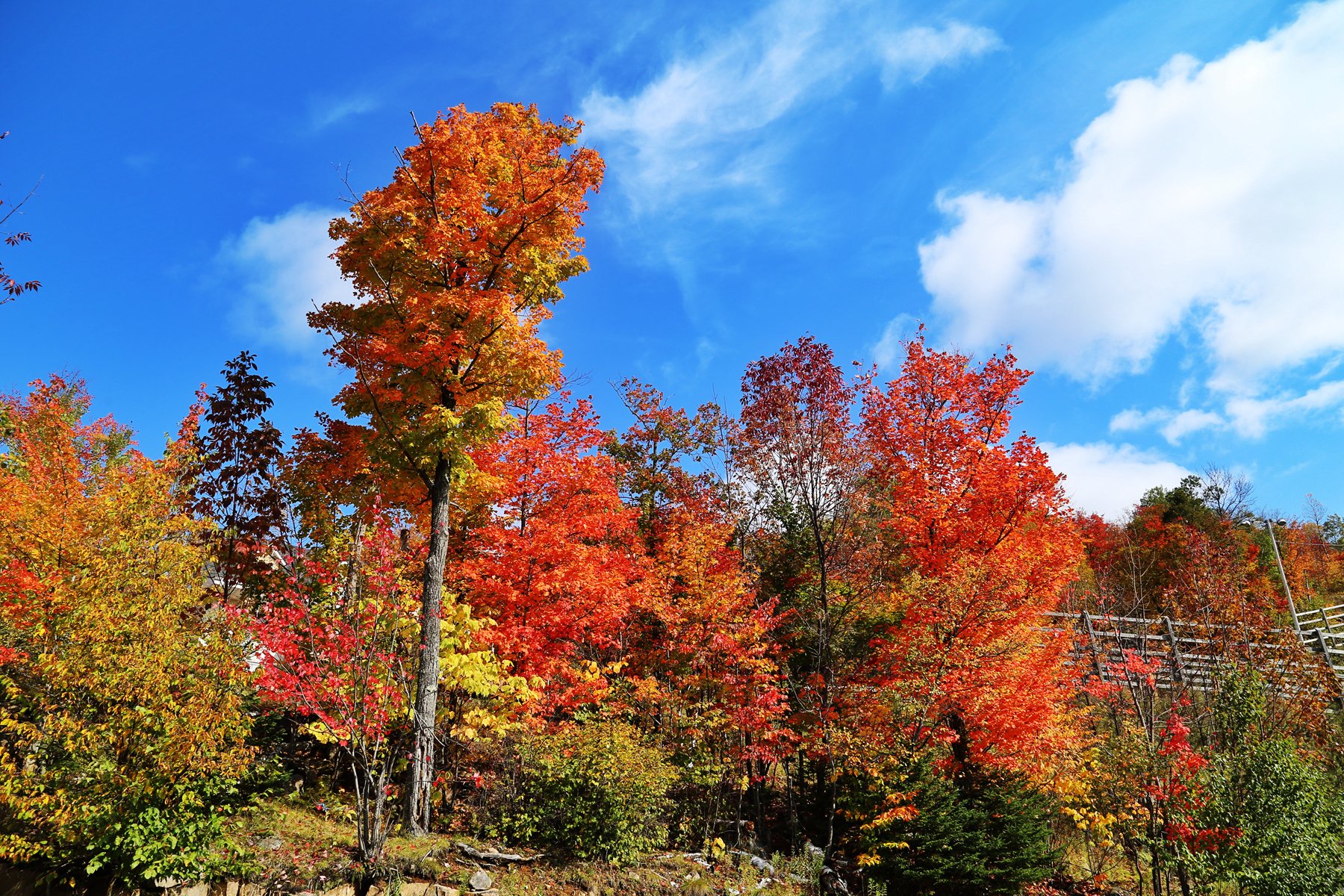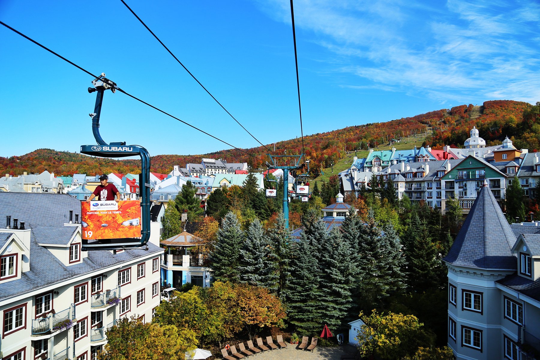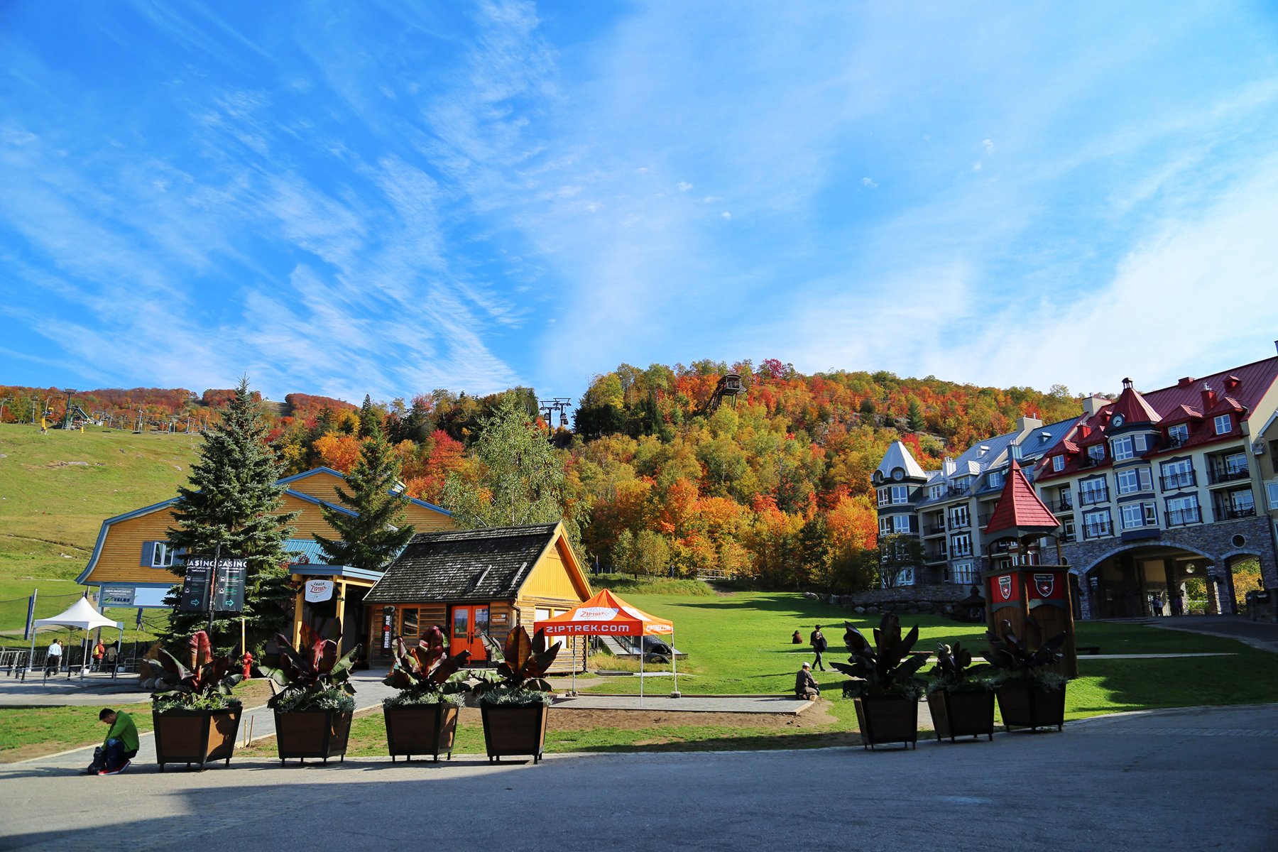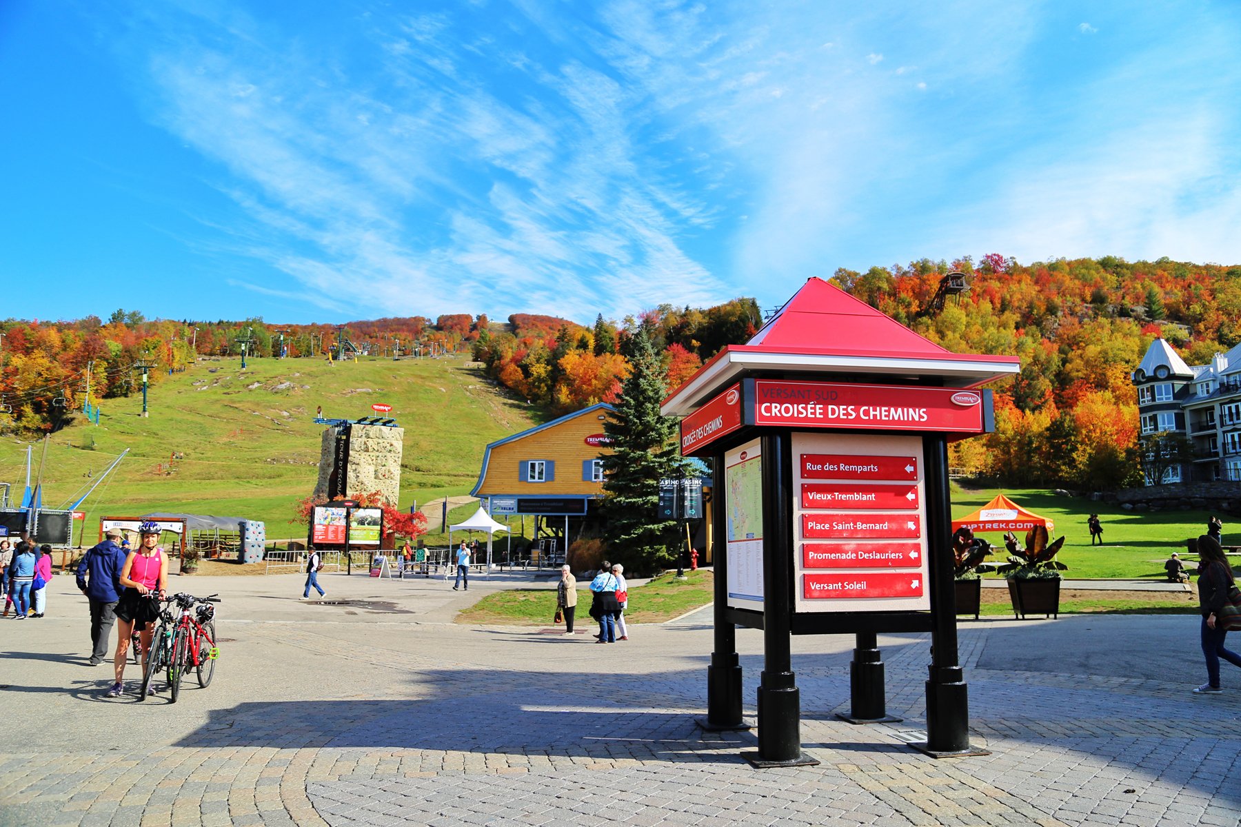 沿着缆车的路径,可以在树林里穿行,或者直接走雪道,当然现在是草地了。