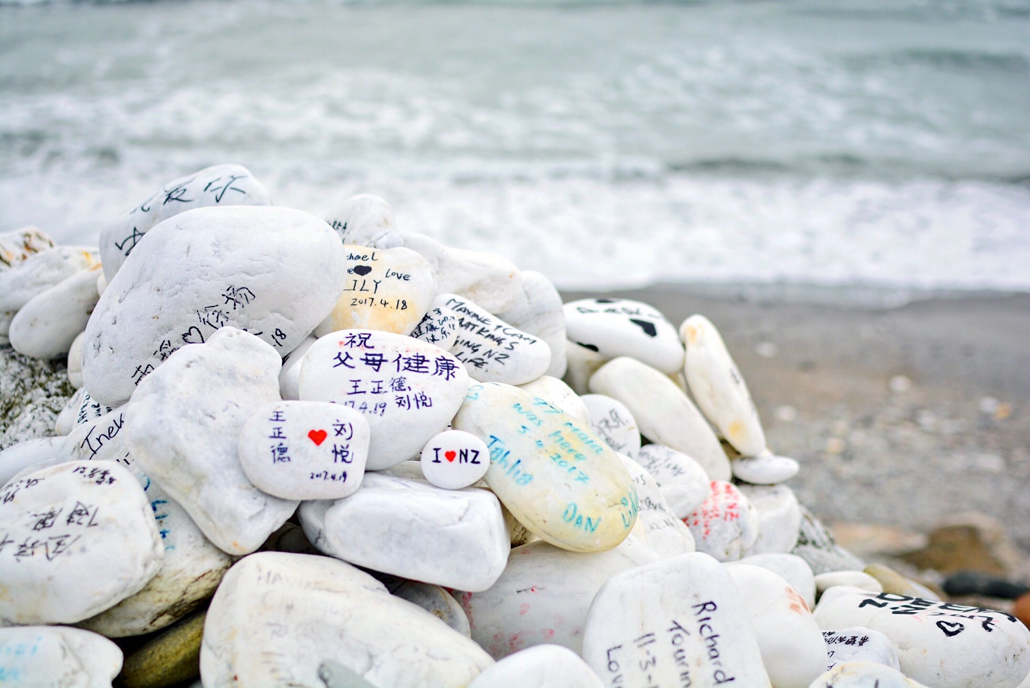 在前往瓦纳卡的路上,会途径布鲁斯湾(Bruce Bay),在这里,大小不一的白色石头上,留下了世界各地的爱的宣言。所以此时此刻,又忍不住要表扬我的老公真的是孝顺。在形形色色我爱你的表白中,他认真的一笔一划写的祝父母身体健康,真的是让我们毫无悬念的在万千石头中脱颖而出,弘扬了中华民族的传统美德。