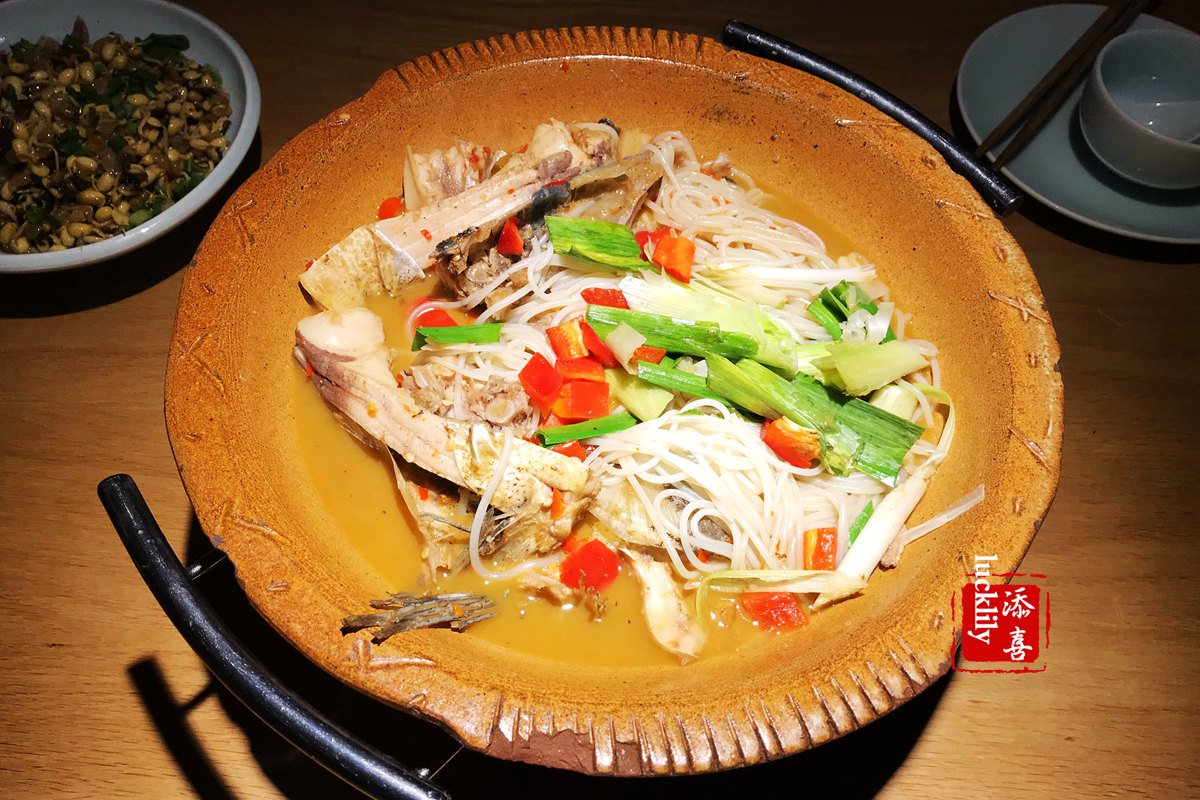 点了招牌鱼头89元,明炉炖煮,服务生给加到的固态度酒精有些多啊,感觉火势好旺。鱼头不是很大,不过带了一些鱼肉,上面还铺盖了一些米线,米线应该只是浸泡过,建议上桌后煮一会儿再吃,这道鱼头辣的很入味,非常的下饭。