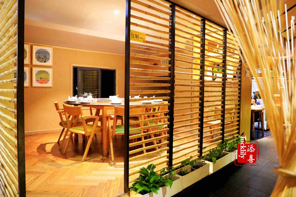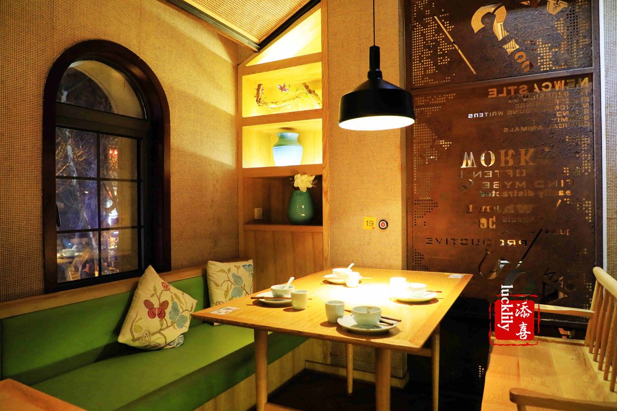 上达堂武林广场店的位置不错,中山北路沿街,近百井坊巷,二层楼,竹元素突显的空间布置,彰显衢州美食之乡的田园气息。
