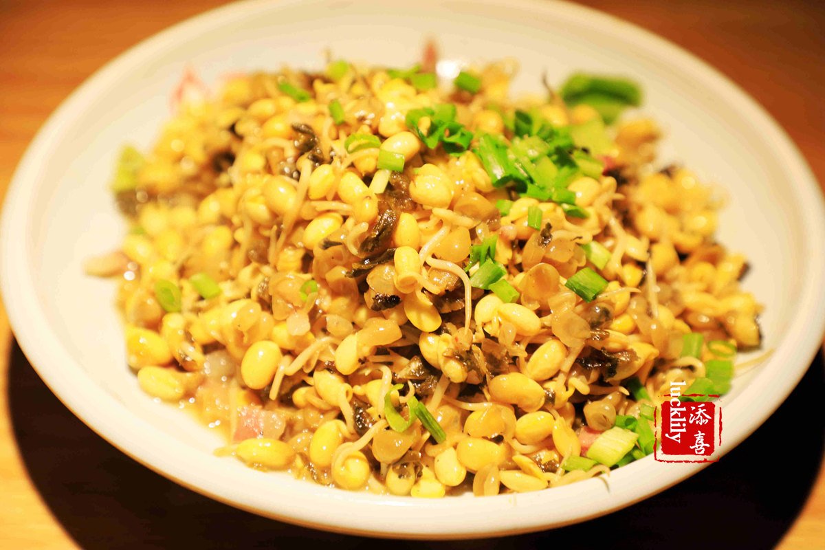 江山豆芽16元,用咸菜与嫩豆芽同炒,微辣咸鲜,也是一道实足给力的下饭菜。
