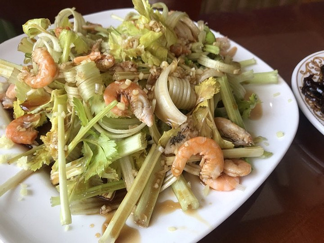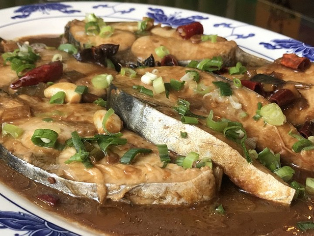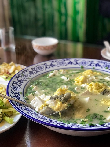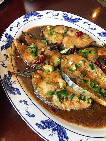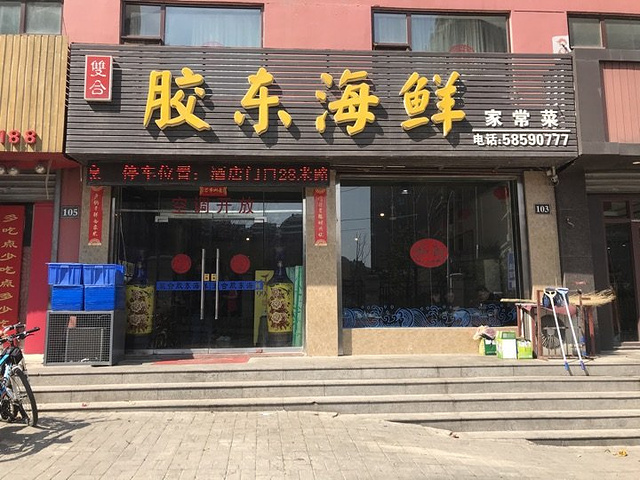 吃之前看点菜台以为会是家不错的胶东海鲜馆,毕竟点菜台上的食材看起来新鲜度还可以,品种也挺多。点完菜才发现有海龙虾,俩人吃饭再多吃不掉只好下次再说。 #酱焖鲅鱼块# 有整条的小鲅鱼和大鲅鱼可选,后者是按块售卖,48元/斤,一块有2斤左右,做出来满满一大盘。尝了一口,酱汁稍咸但味道是正的,但是鱼肉入味不好,有点糟烂的口感把鲅鱼肉本身的缺陷暴露了出来,不喜欢,最后一半多都剩下了; #海蛎子豆腐汤# 36元/份,海蛎子、豆腐、鸡蛋、韭菜这几种食材的组合,按说应该出来非常鲜美的味道,实际上没让我感受到,海蛎子给的分量还行吧; #海米马家沟芹菜# 28元/份,马家沟芹菜还是蛮喜欢的,海米个头也不小,作为清口的凉菜是合格的; #胶东大馒头# 本餐最满意的其实是它,蒸透后切片上桌,嚼起来略带甜味,随盘上的还有两块酱豆腐,还别说,这俩真搭配,只是这两样就够一顿饭; 送的小咸菜也不错~ 【环境、服务】 店内都是矮脚小方桌和马扎,收拾的挺干净。 服务就和没有差不多吧…… 上菜速度慢,吃个饭催好几遍。 其实对这餐菜品水准不满意,先给个三星吧,因为位置原因以后可能还会再来,再不回好吃就给差评喽~