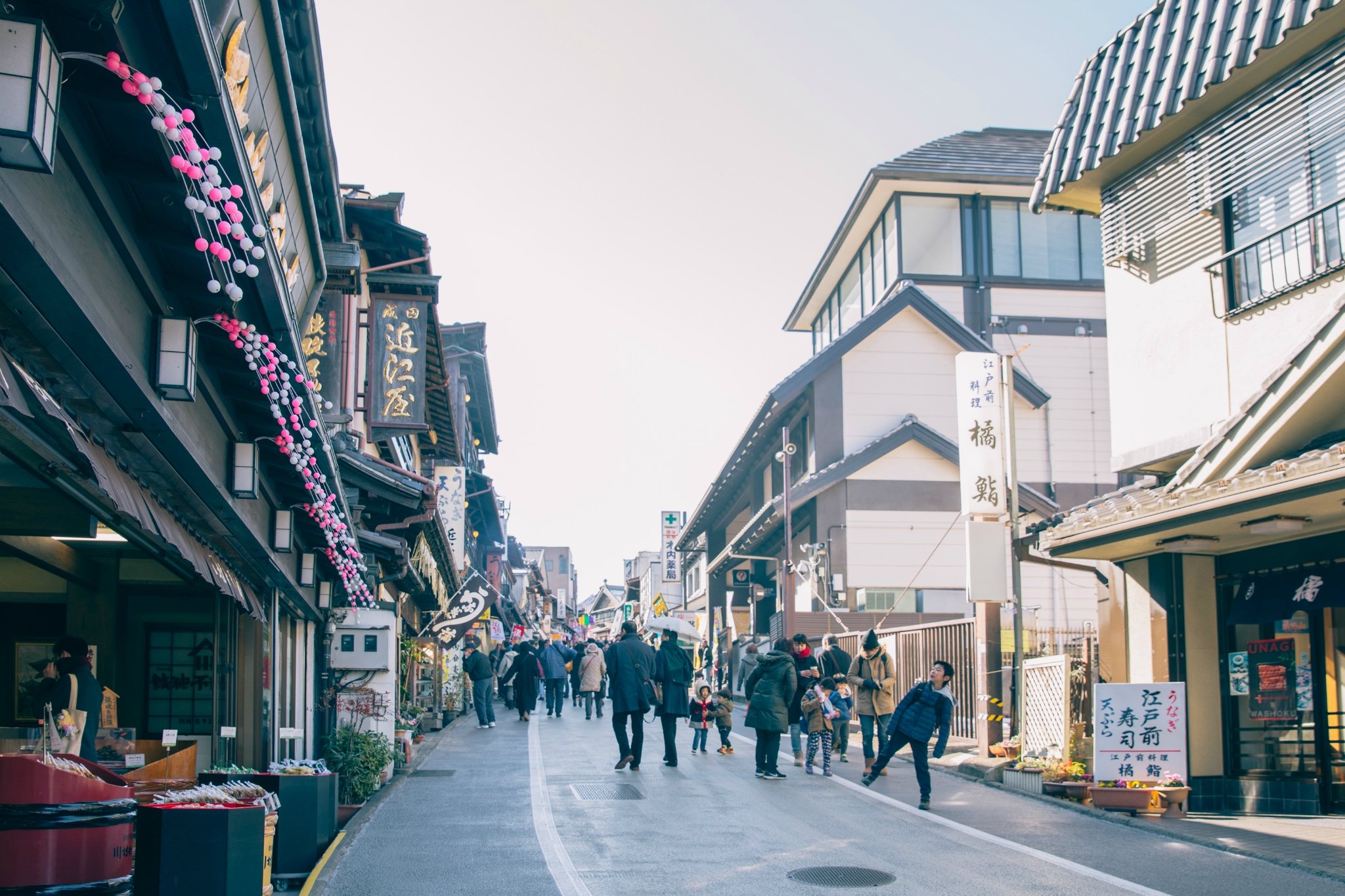 连接成田山新胜寺与车站间的,是一条长约800米的参道,也被称为成田山表参道。和我们国内古镇的老街有异曲同工之妙,道路两旁都是售卖各种纪念品、特产、美食的小商店。