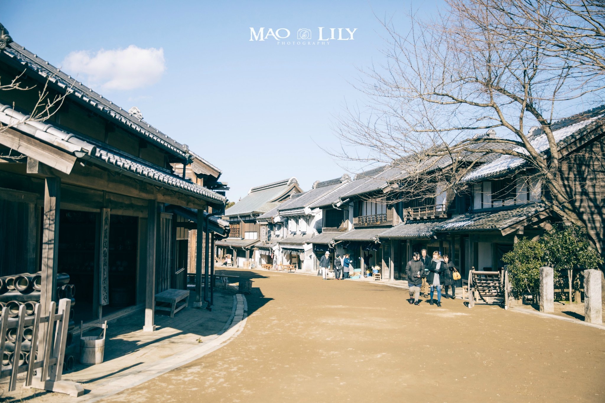 置身其中,仿佛穿越到了150年前日本房总地区的街道,以武士住家建筑、农房等为原形,再现了当时风景的仿古设施。