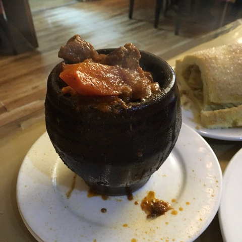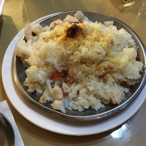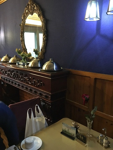 没什么服务可言 领个座点个菜就完了 点了红菜汤12 罐牛肉58 土豆沙拉18 铁板巴沙鱼58 苹果派18 海鲜焗饭38 罐牛肉就是红萝卜焖牛腩 算是这几个里面唯一可以点的菜 铁板巴沙鱼是点单的老啊姨推荐的 锡纸盘就叫铁板 几粒蟹味菇和蒜头焗的鱼 蒜头超多 想拿那汁拌个饭还得先把蒜头一颗颗挑出来 苹果派真心不好吃 苹果馅酸 派底厚又不酥 红菜汤就是罗宋汤 这个价钱不过不失 最夸张的是那个海鲜焗饭 铁碟白饭 拌了洋葱跟红萝卜在里面 旁边铺了几个冰鲜虾仁和几粒冰鲜巴沙鱼 面上洒了芝士粉 还焗焦了 整个饭没有味道 男朋友说这个简直颠覆了他对海鲜焗饭的印象 整顿饭232 吃完下来 袁世凯的孙女儿没见着 也没有任何一个菜一样服务一个点值得我再来 真要再来 可能也只会是因为走太累坐下来 喝一杯十块钱的即溶咖啡(点了咖啡的隔壁桌说的) 喝了就走