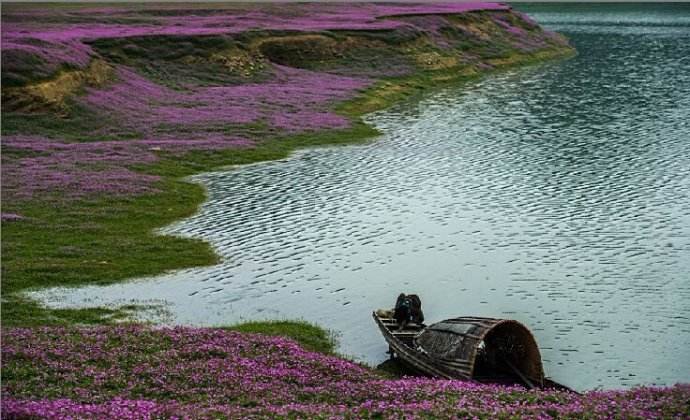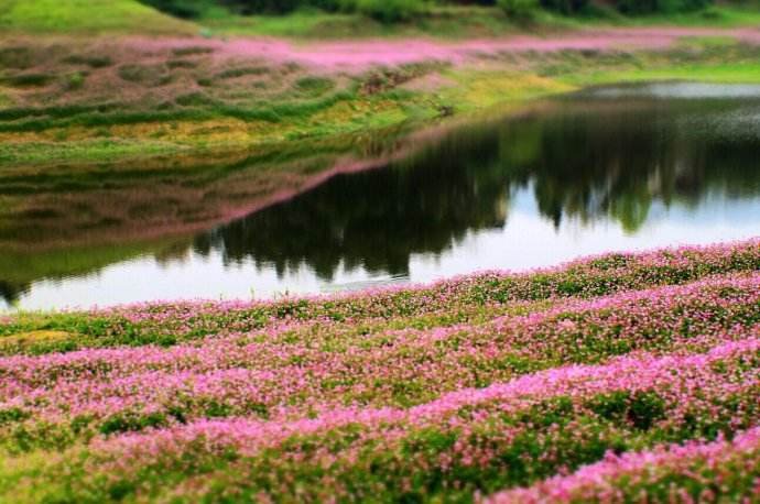 ...英形成紫色花海,尤其是靠近资江两岸近千米的花带连绵不断,像两条紫色丝带,伴随资水东去,美不胜收
