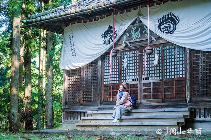 秋天的阳光透过树林照进来,细碎的光影斑驳在神社古老的木格窗上,漫散出一种深邃静谧的味道。