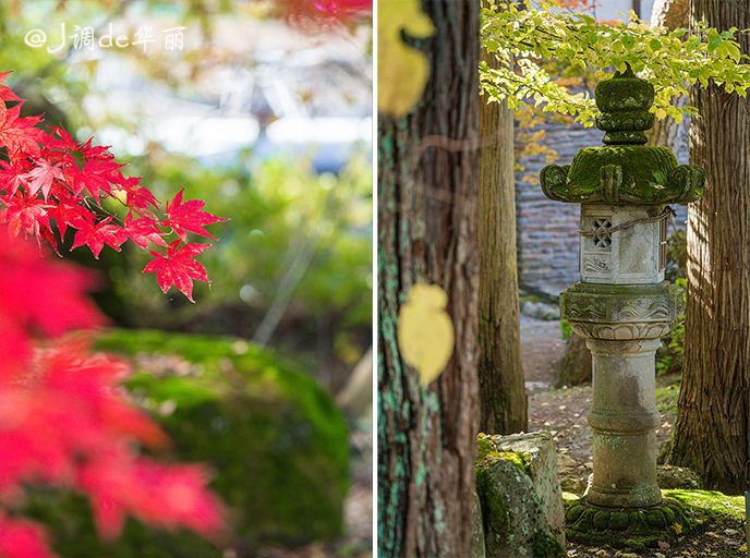 十月中旬的长野已经可以见到红叶的影子,深深浅浅地晕染出渐变的秋色,衬托着古寺显得格外有诗意。