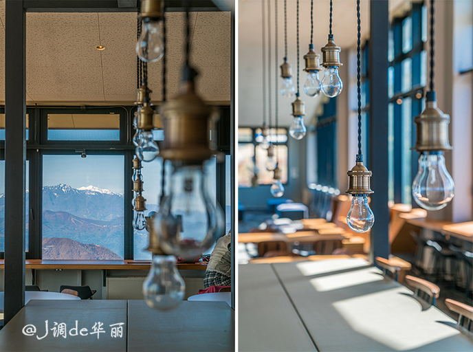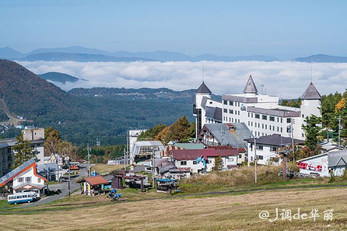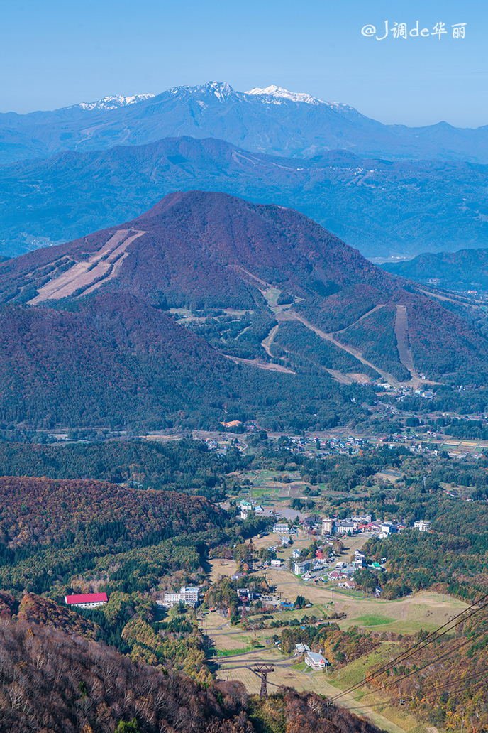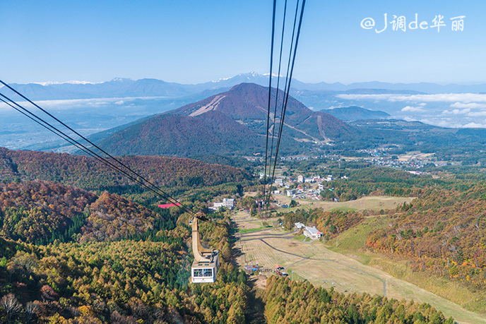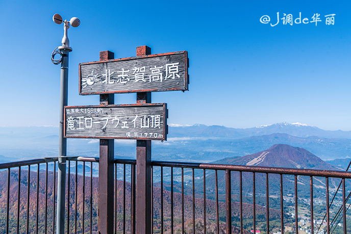 从这里可以俯瞰整个龙王滑雪公园和北志賀高原的伟岸山姿,底下是雪道,龙王滑雪公园一共有17条雪道,最大落差1080米,最长滑行距离6公里。