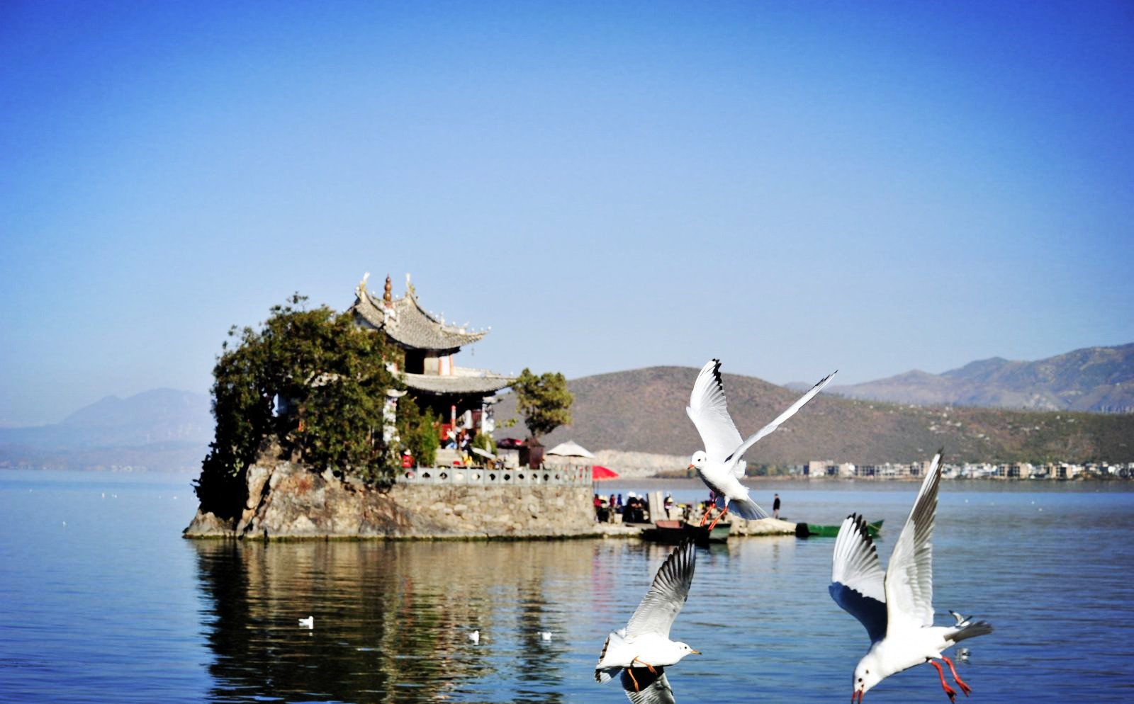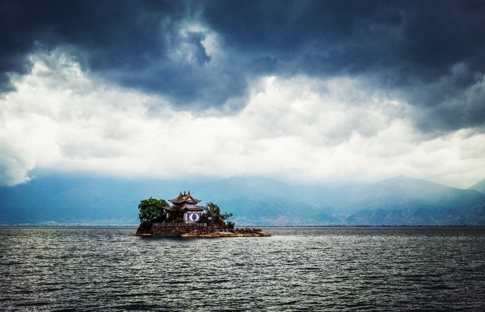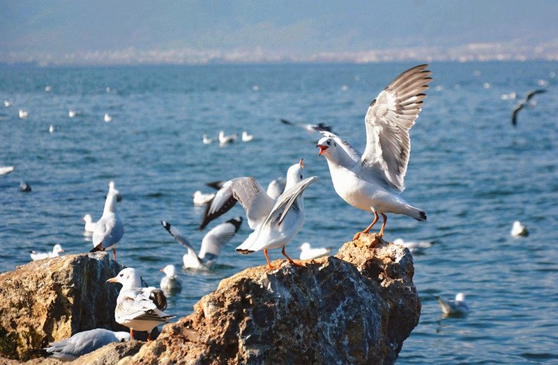 清晨时,海面上雾气袅袅,小普陀时隐时现,宛如月宫,待登上小普陀,只见四周雾气涌动,犹如洁白的轻纱。这就是洱海八景之一“岚霭普陀”。