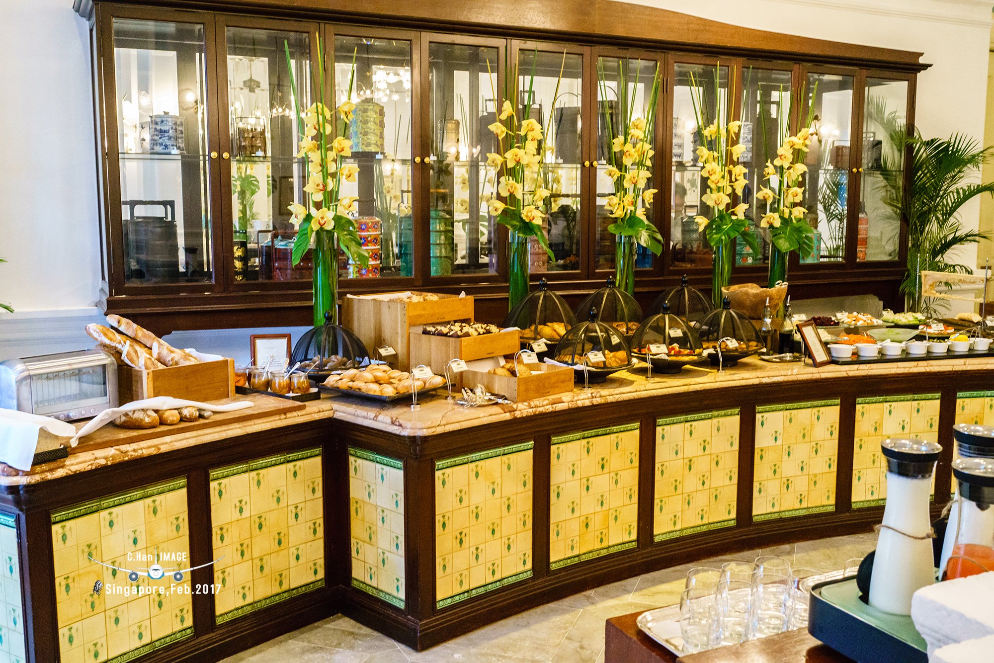 在莱佛士酒店Tiffin Room每天享用早餐都没有进行拍照,今天是在这里最后一次吃早餐,所以还是要留下一些映像。这家餐厅最有名的不是早餐,而是午餐和晚餐提供的咖喱自助餐和英国经典传统下午茶。